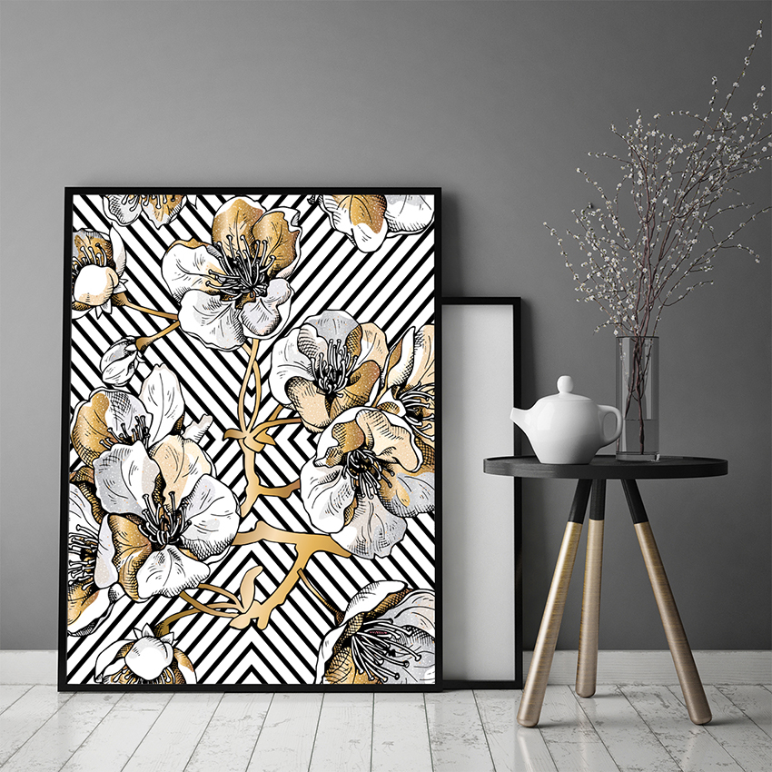 shumee PLAKAT ZA SLIKE V OKVIRJU 53x73 cm Zlate rože P1256
