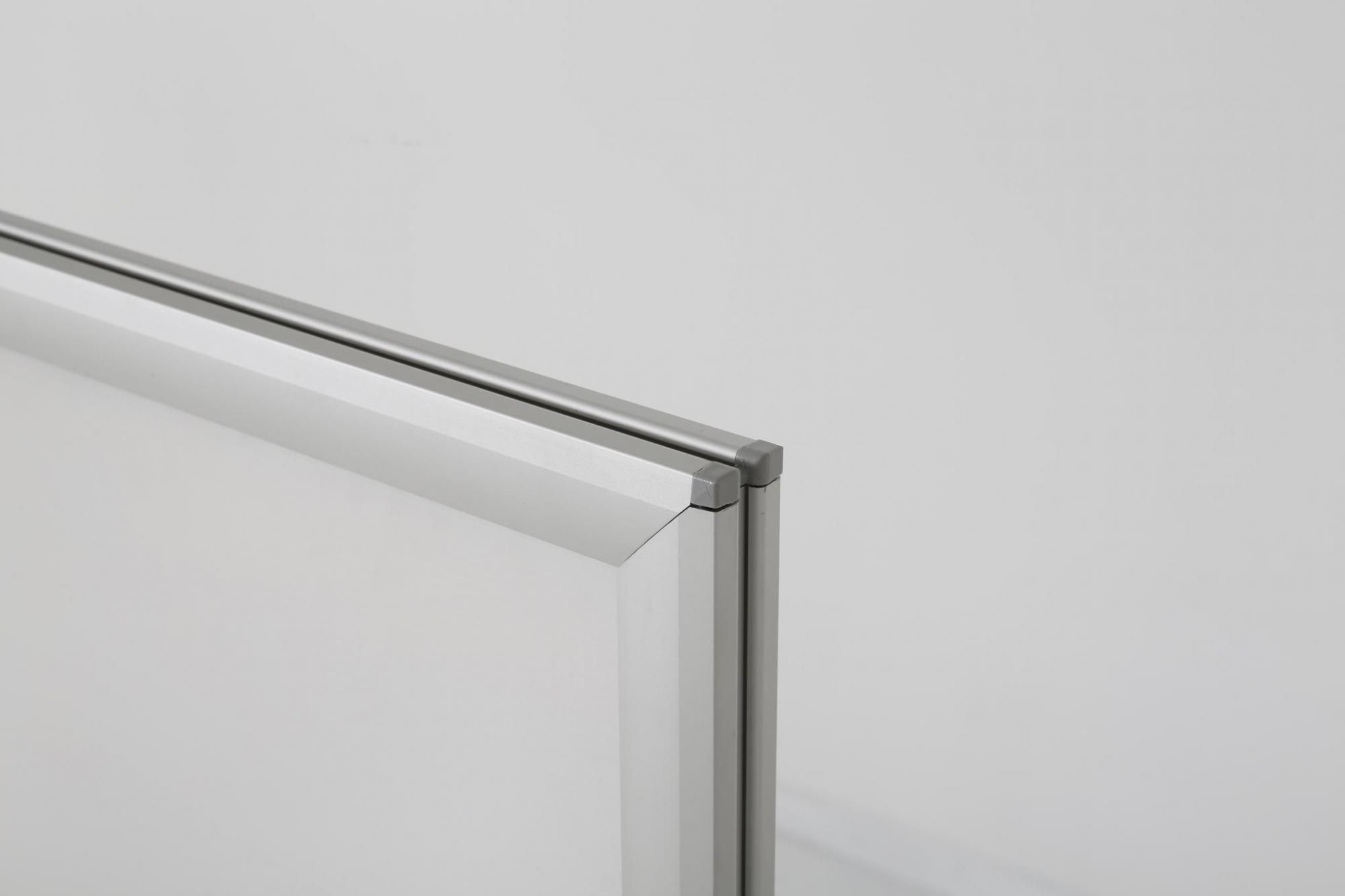Stojalo je opremljeno s srebrnim okvirjem OWZ (odpri-vstavi-zapri) s profilom 32 mm , ki omogoča hitro menjavo plakatov brez orodja. To omogoča takojšnje posodabljanje oglaševalske vsebine v skladu s trenutnimi promocijami ali dogodki.