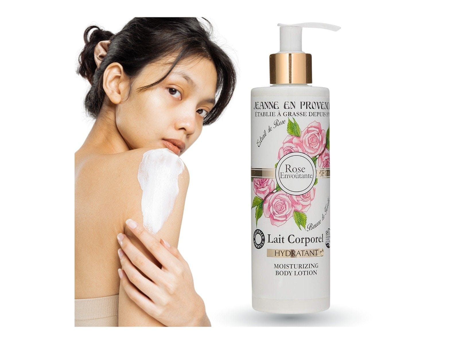 Pustite se očarati vrtnicnemu čaru in podarite svoji koži najboljšo nego z vlažilnim mlekom za telo Jeanne en Provence.