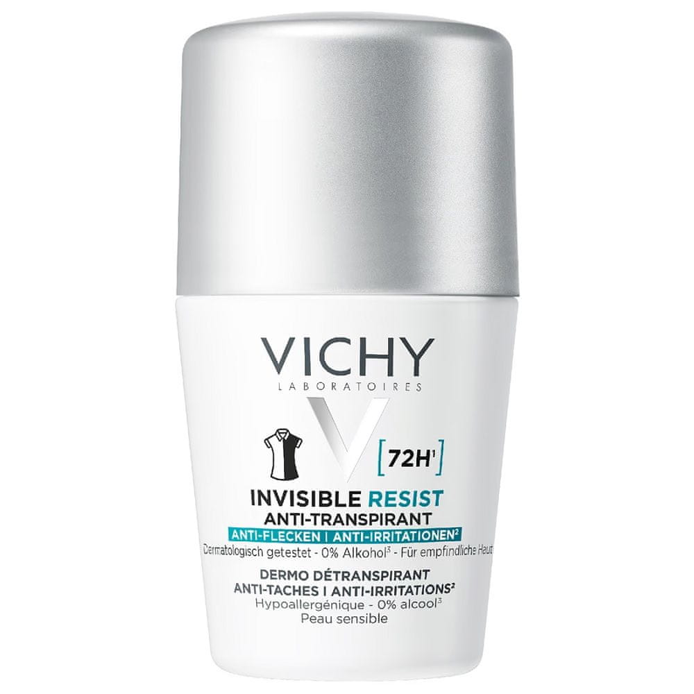 Učinkovit deodorant proti potenju Vichy Invisible Resist uravnava prekomerno potenje do 72 ur, zahvaljujoč formuli proti madežem pa ne pušča rumenih ali belih sledi na oblačilih. Zahvaljujoč hipoalergenemu kompleksu aktivnih sestavin in formuli brez alkohola je antiperspirant posebej nežen do občutljive kože. • nežen za občutljivo kožo • uravnava potenje do 72 ur • ne pušča rumenih in belih sledi na oblačilih • brez alkohola • hipoalergena formula Uporaba: Uporabite vsak dan na čiste in suhe pazduhe.AQUA / WATER / EAU • ALUMINIJ KLORHIDRAT • DIMETIKON • C14– 22 ALKOHOLI • PARFUM / DIŠAVA • STEARETH-100/PEG-136/HDI KOPOLIMER • PERLIT • TETRANATRIJEV GLUTAMAT DIACETAT • C12–20 ALKIL GLUKOZID • PENTILEN GLIKOL (FIL N70040078/1).