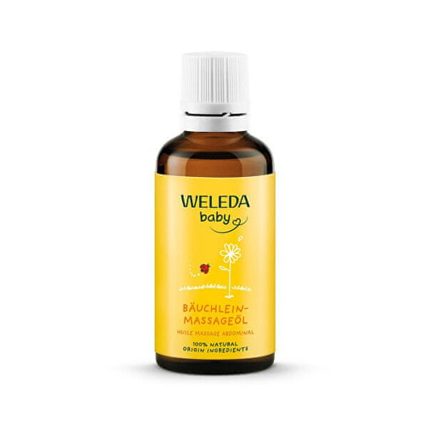 Med masažo moramo biti pozorni na zadostno sobno temperaturo in udobno temperaturo rok. V rokah segrejte malo WELEDA masažnega olja za trebuh in ga držite v smeri urinega kazalca okoli popka.