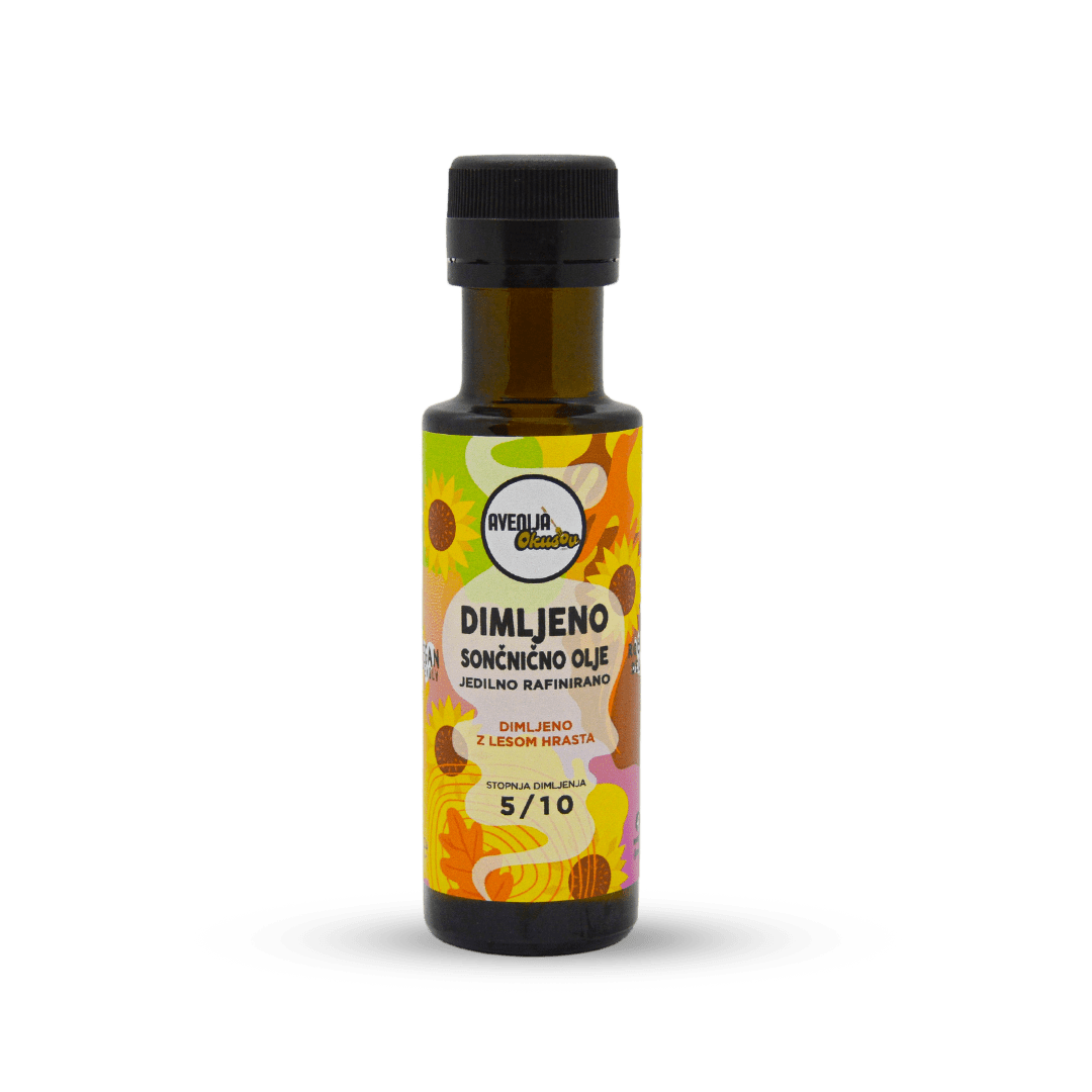 100% jedilno rafinirano sončnično olje, dimljeno s hrastovim lesom.