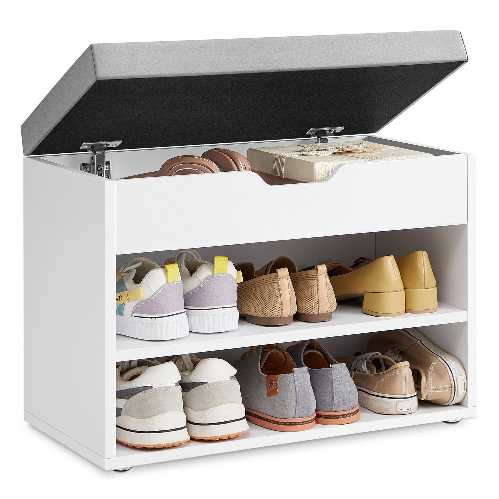Organizirajte svoj predprostor ali spalnico s to elegantno klopjo za čevlje z oblazinjenim sedežem za udobno sedenje. Večnivojska zasnova nudi obilo prostora za shranjevanje čevljev in dodatkov ter pomaga ohranjati vaš prostor urejen in prijeten. Celoten opis