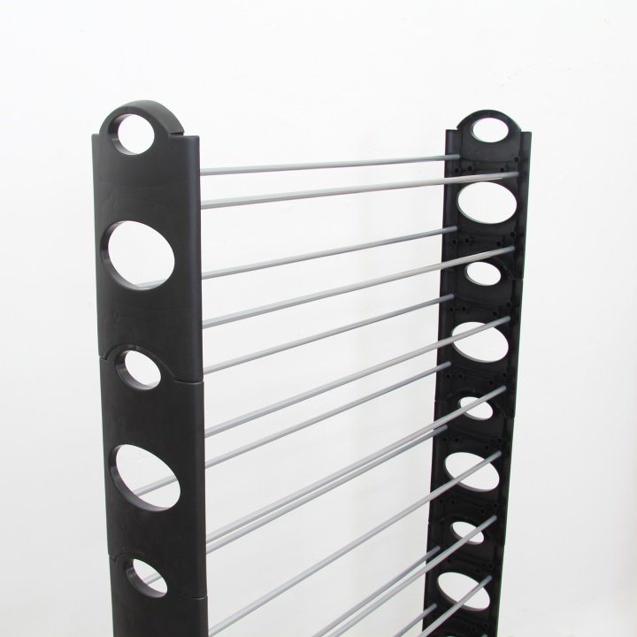 Sodoben regal za čevlje BOTIS TIP 4 je visok 10-vrstni regal za čevlje, primeren za 50 parov čevljev. Stojalo za čevlje bo praktičen dodatek v vaši predsobi. Material za izdelavo je kovina v kombinaciji s plastiko v barvni različici črno/siva. Maksimalna nosilnost prtljažnika je 32 kg. Celoten opis