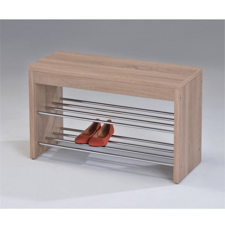KONDELA Lusia stojalo za čevlje s klopjo - sonoma hrast / krom