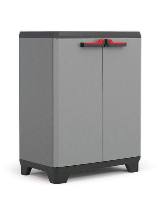 Kis kakovostna nizka omara, izdelana iz kakovostne plastike. Lahko se uporablja zunaj ali notri, in je idealna za organizacijo in shranjevanje različnih pripomočkov in orodja.
