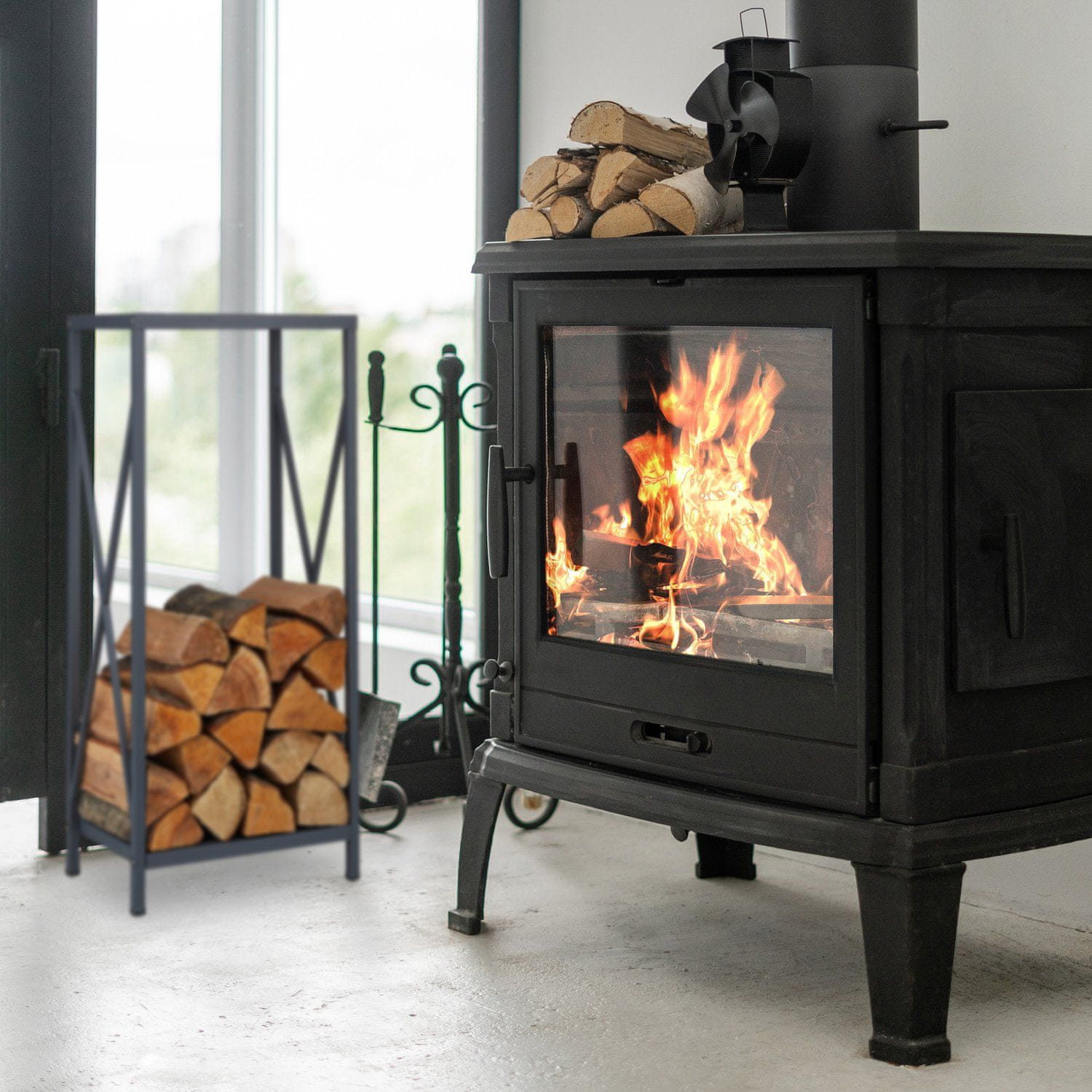 Optimizirajte svoje ogrevanje s to učinkovito polico za shranjevanje lesa, ki zagotavlja, da so suha drva vedno pri roki. Izdelan iz robustnega jekla, se njegova elegantna oblika brezhibno vključi v Celoten opis