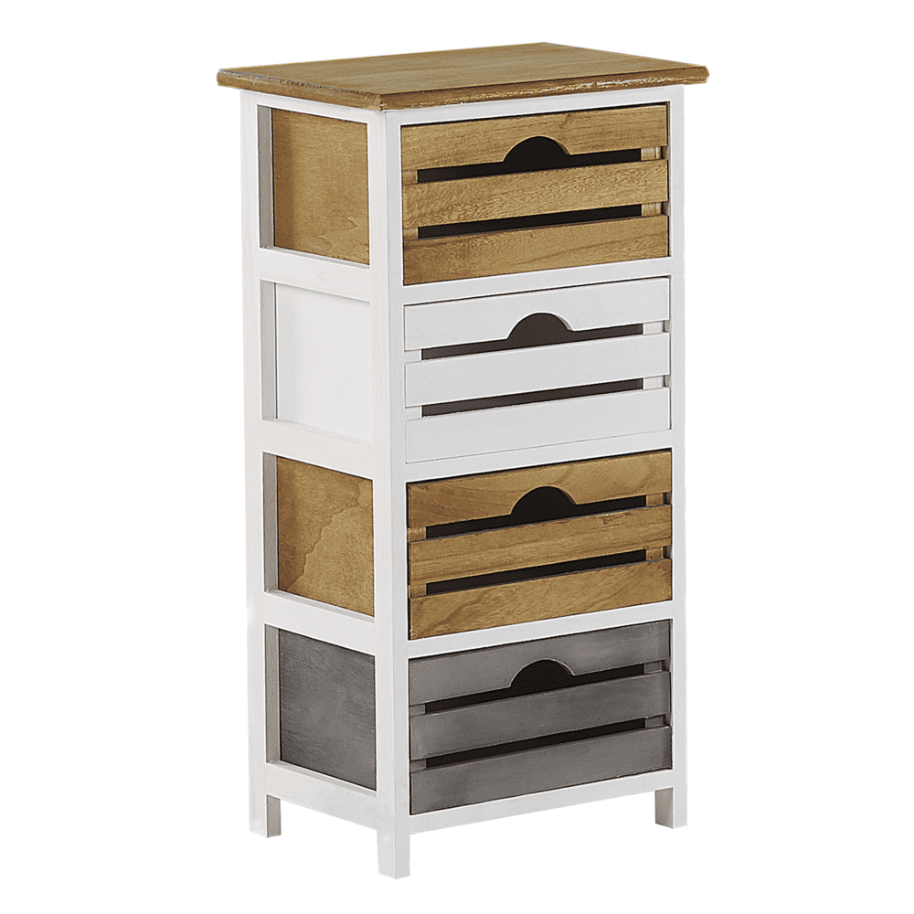 Če iščete majhen kos pohištva, ki bo zagotovil praktičen prostor za shranjevanje vseh dodatkov in pripomočkov v vaši sobi, dnevni sobi ali hodniku, bo ta omara popolna rešitev. Izdelan je iz lesa paulownia in vezanega lesa, zato je trpežen, stabilen in hkrati lahek. Predali v treh barvah mu dajejo edinstven videz in se dobro ujema s pletenim pohištvom v svetlih lesnih odtenkih in skandinavskem slogu.