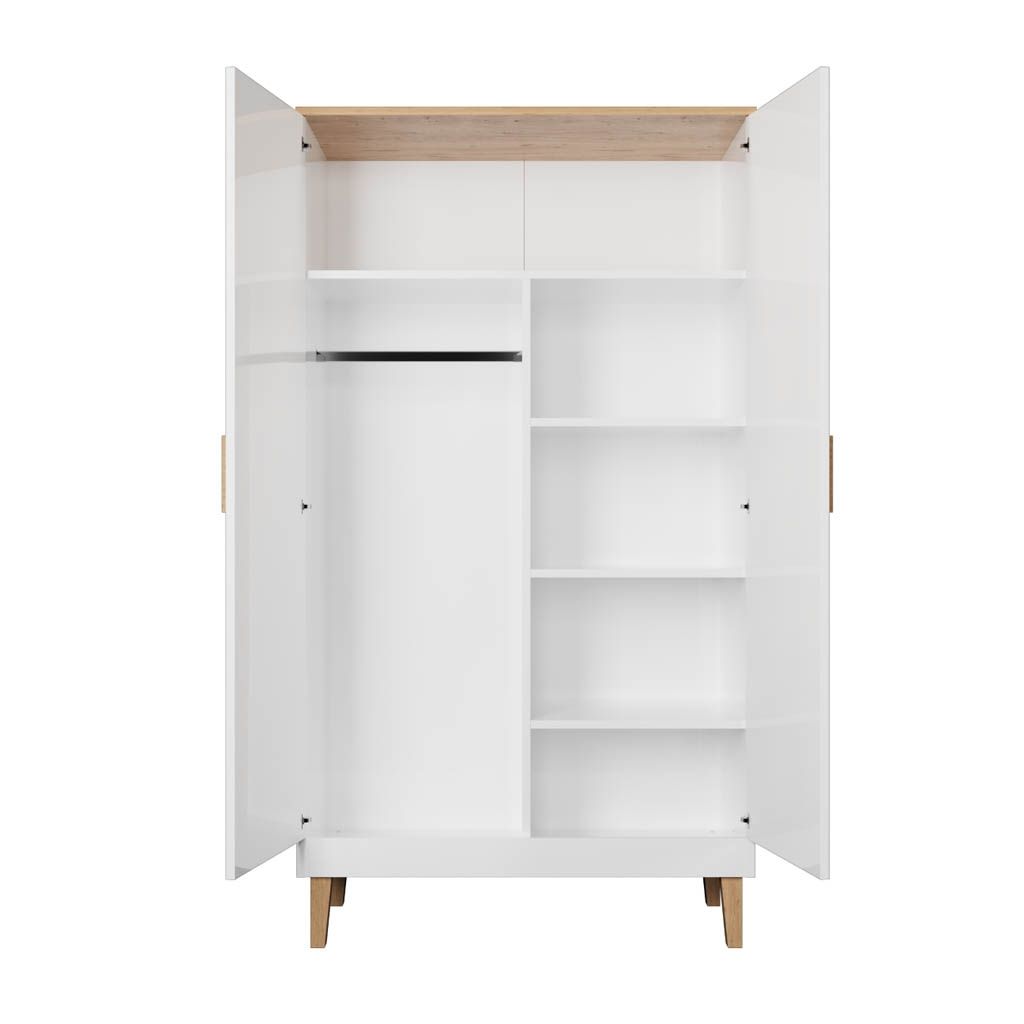 Čudovita in moderna garderobna omara DENVER je na voljo v kombinaciji bele barve in hrasta. Garderobna omara vsebuje štiri police in obešalno palico, ki vam bo služila za obešanje večernih oblek in ostalih boljših stvari Celoten opis