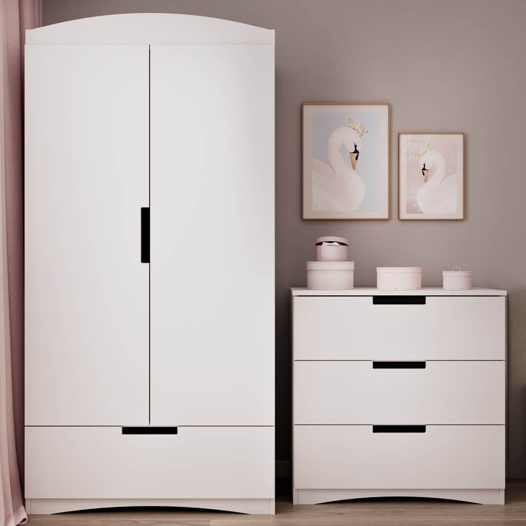 Ste na lovu za minimalistično garderobno omaro, ki se lahko uporabi tako v otroški kot v mladinski sobi? Potem je garderobna omara EMA kot nalašč za vas, saj se ponaša z izjemno minimalističnim dizajnom, ki izgleda odlično v popolnoma vsakem prostoru. Omara je razdeljena na dva prostorna predala, leva stran omare ima krajšo palico za obešanje, na desni strani se pa nahajajo 4 poličke, tako da vam nudi obilo prostora za shranjevanje vseh vaših oblačil in modnih dodatkov.