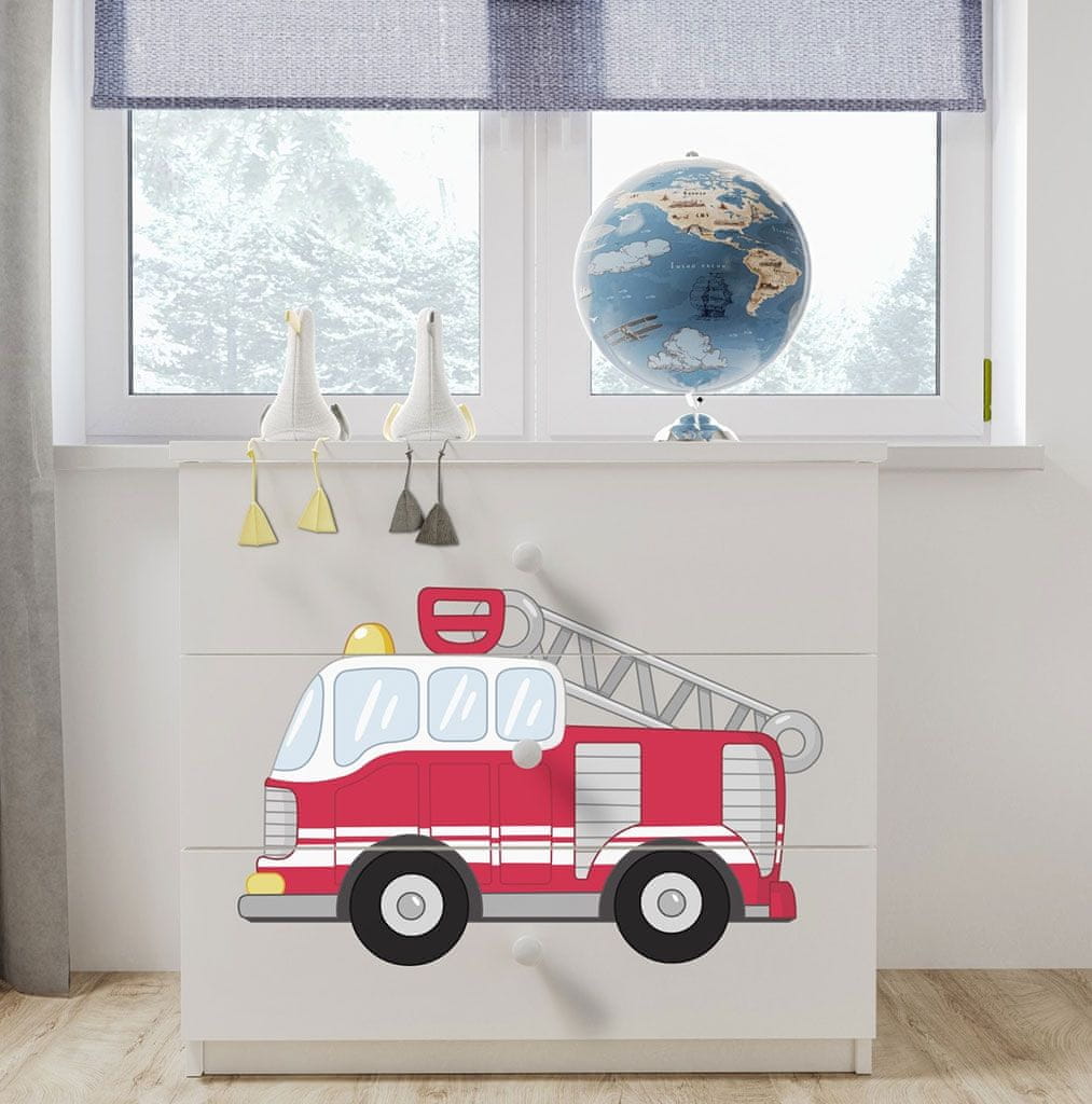 Predalnik Dreamy z motivom gasilskega tovornjaka popestri otroško sobico in v njej ustvari prijeten ambient za igro, spanje in učenje. Predalnik je na voljo v treh različnih barvah in nudi obilo prostora za shranjevanje oblačil in igrač. Predalnik je del kolekcije Dreamy, ki je na voljo v 4ih različnih barvah in nudi številne različne motive, ki so primerni tako za fantke kot za punčke.