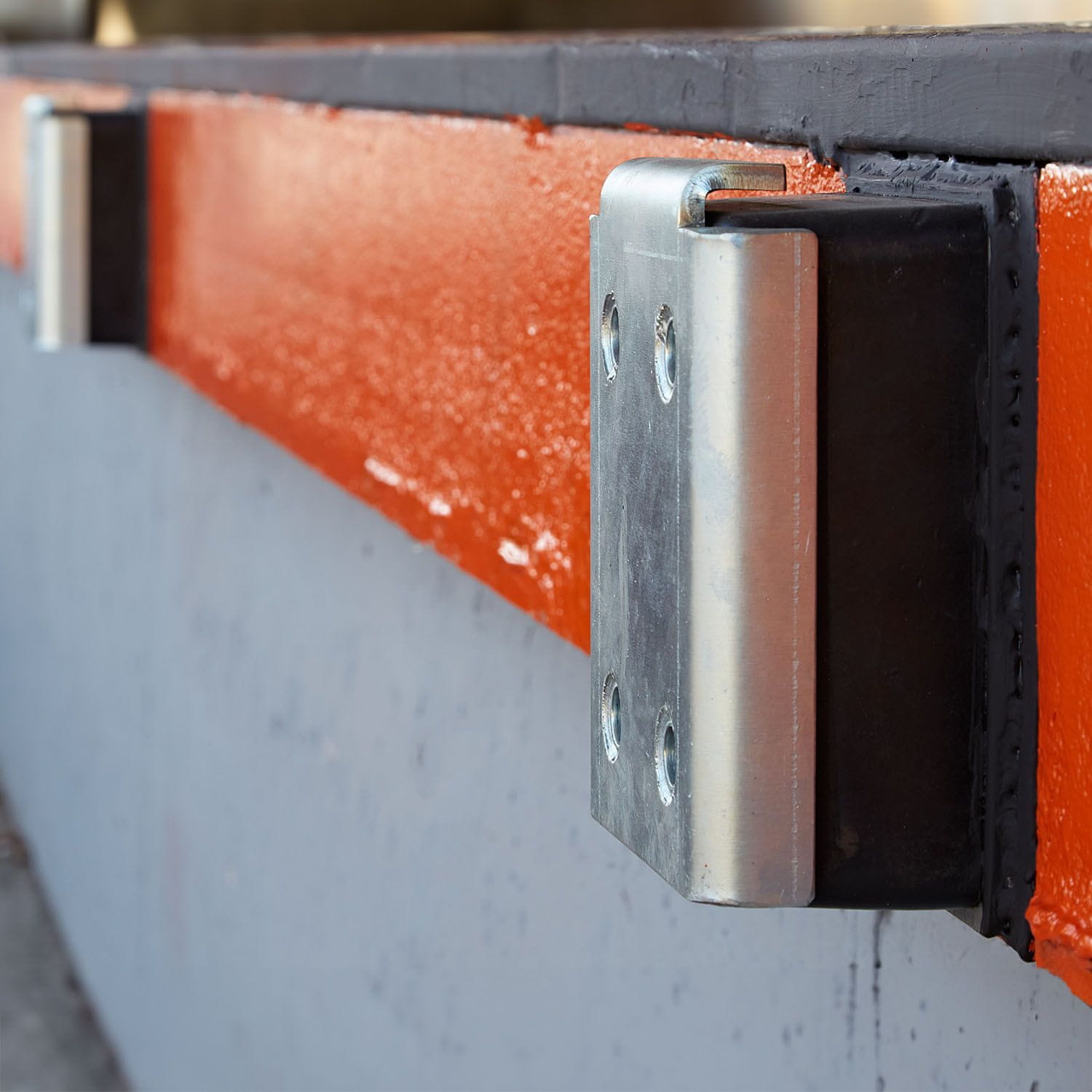 • Trpežna gumijasta blazina učinkovito absorbira udarce in preprečuje poškodbe vozil, nakladalnih površin ali strojev,