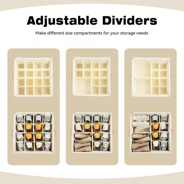 Izdelan iz vrhunskih materialov, kot so ojačan karton, visoko gostotno oksford blago in votle pregrade iz plošč, ta organizator za shranjevanje čevljev zagotavlja dolgotrajno in zanesljivo rešitev za shranjevanje.