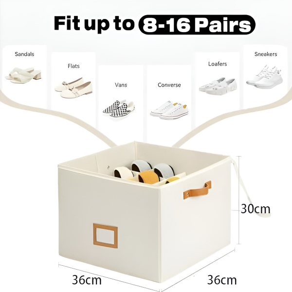 Organizator čevljev SHOVERA je zasnovan za 8–16 parov čevljev, vključno s sandali, copati in supergami, v kompaktni velikosti 36×36×30 cm. Njegova zložljiva zasnova omogoča enostavno shranjevanje, ko ni v uporabi, zato je idealen za domove, študentske sobe in sezonsko obutev.