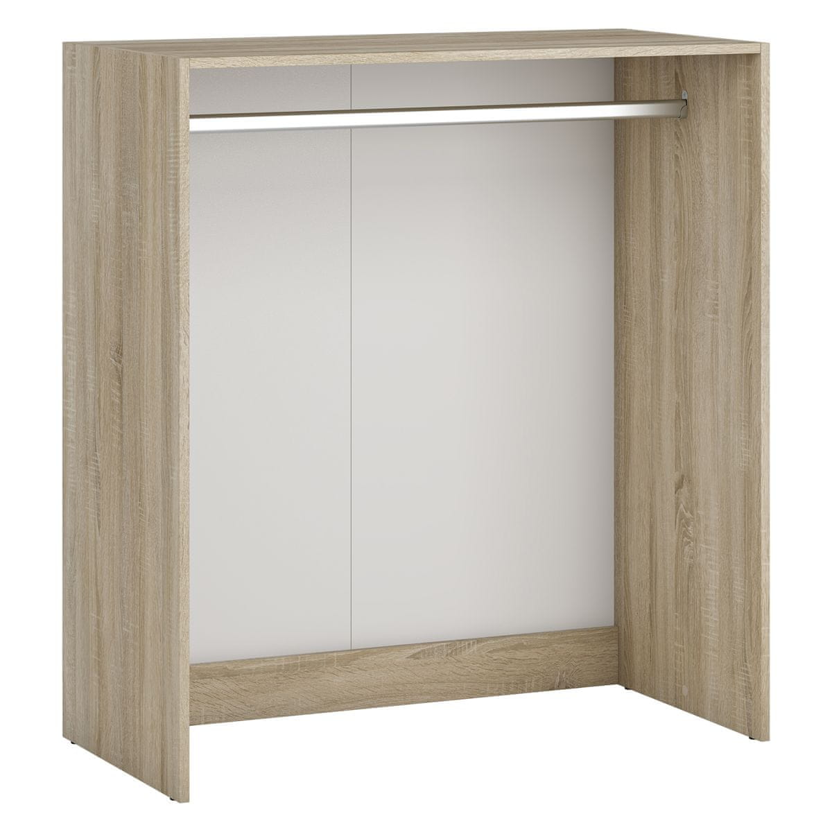 Ustvarite prostor, ki ga potrebujete, z odprto omaro SIGNES VT2 1000 v hrastu sonoma z merami (ŠxGxV): 100×50×110 cm. V paketu je palica za obešanje. Zahvaljujoč posameznim dokončanim komponentam modularnega sistema Signes je mogoče sestaviti veliko število različic praktične garderobne omare po vaših najbolj skrivnih zamislih. Mere posameznih komponent so zasnovane tako, da jih je mogoče enostavno kombinirati, hkrati pa njihova oblika ostaja uravnotežena in stabilna. Vse module je možno med seboj kombinirati v dveh slojih, ki sta postavljena ena na drugo. Celotno ponudbo kolekcije Signes sestavlja trinajst različnih delov sestavljivih modulov. Te je mogoče naročiti v različnih količinah in vrstah, da zadovoljijo potrebe različnih strank. Kolekcija Signes je izdelana iz iverne plošče in vseh 13 komponent je na voljo v dveh barvah. Preprosto ustvarite garderobo svojih sanj.