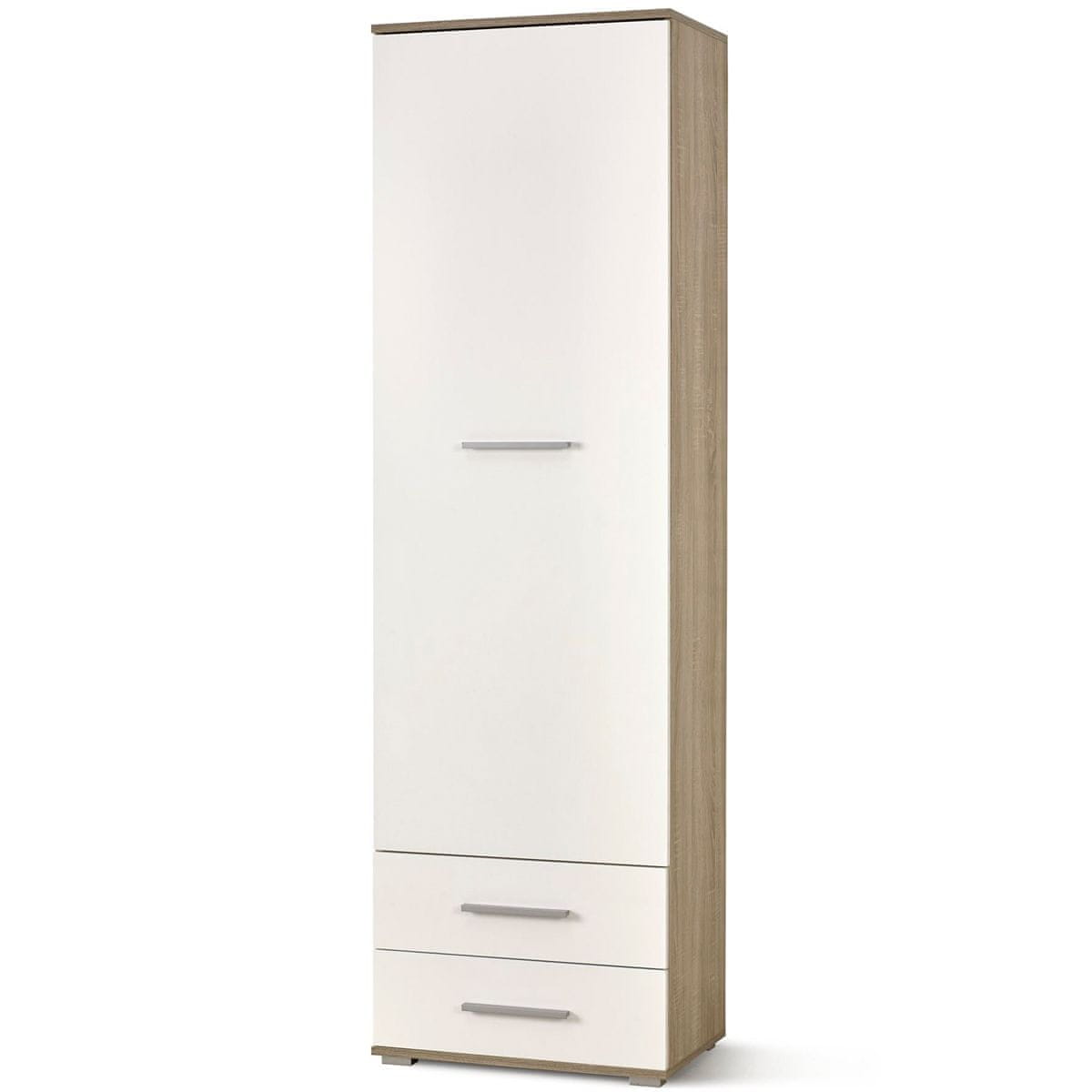 Regal LIMA REG1 je enovratna omarica z dvema predaloma, ki je primerna za postavitev v moderno opremljen dom. Za vrati so 3 police. Dimenzije omare so (ŠxGxV): 60×40×200 cm. Material za izdelavo je laminiran in lakiran DTD v barvi sonoma hrast / bela z visokim sijajem. Robovi regalne omarice so obrobljeni z ABS obdelavo. Če vam barva ne ustreza, je na voljo tudi v drugih barvnih različicah.