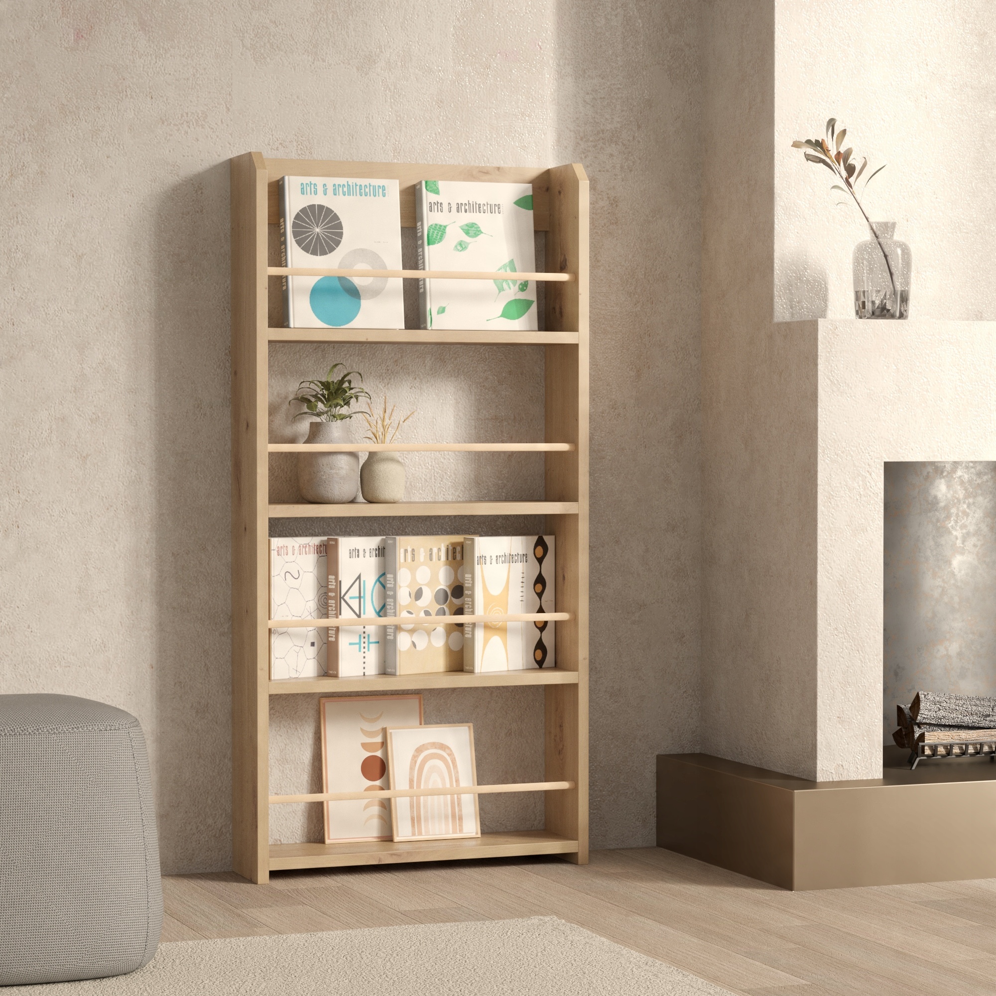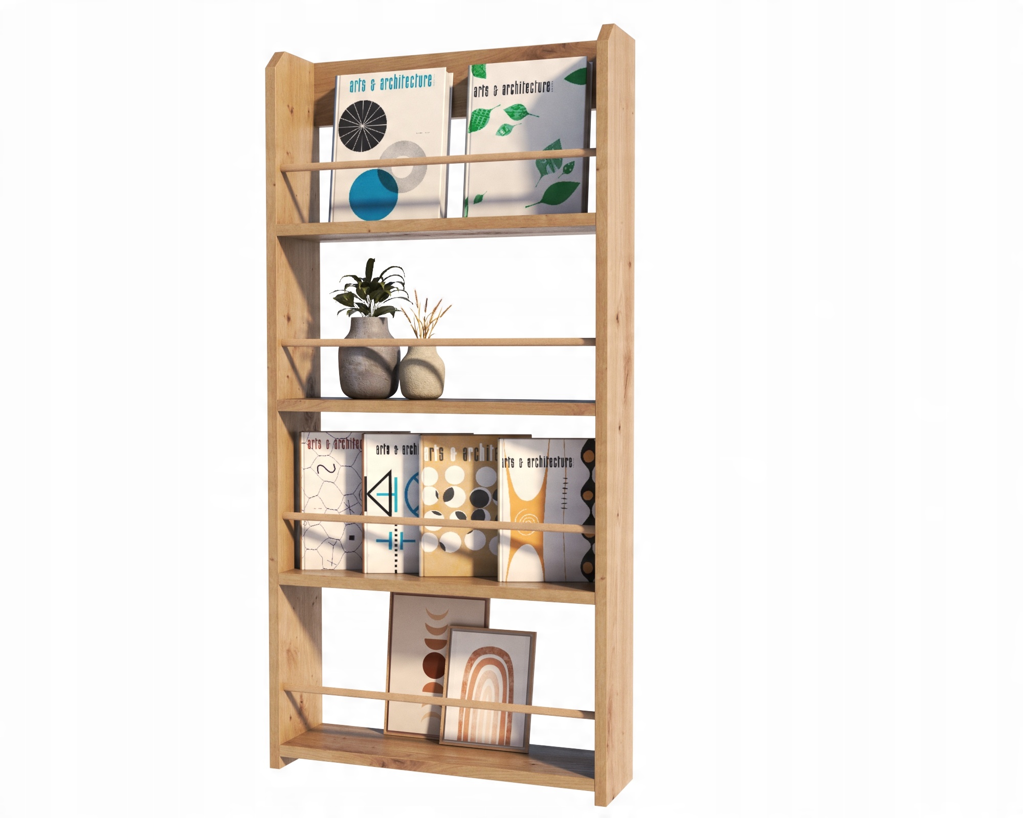 Vsestranske in naravne barve se dopolnjujejo z različnimi notranjimi prostori. Premišljena razporeditev polic je bila zasnovana z mislijo na vaš prostor. Knjižna omara se dopolnjuje tako s klasično kot moderno opremo.