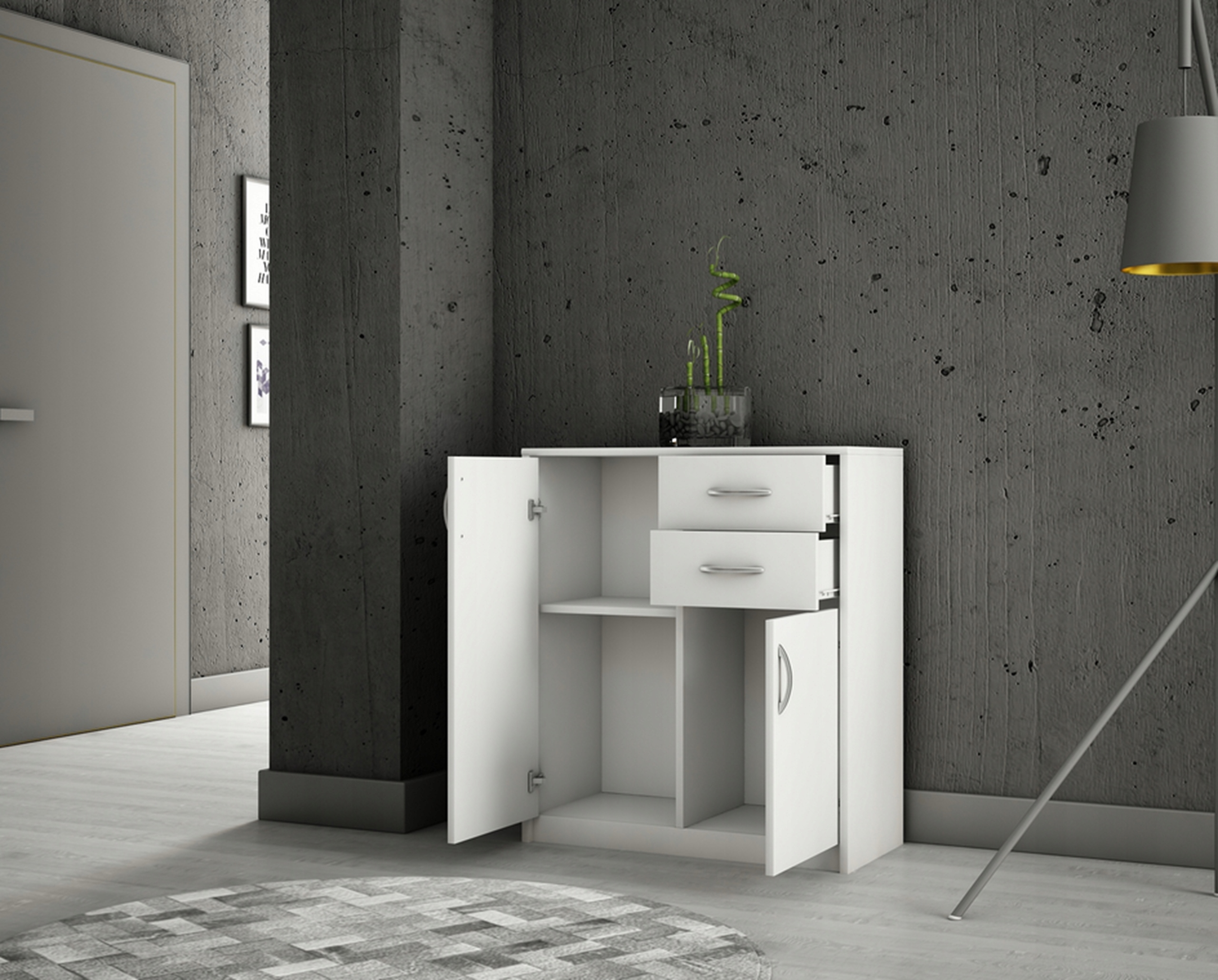 2D2S KOMODA Z DVEMA PREDALOMA IN DVOMI VRATI