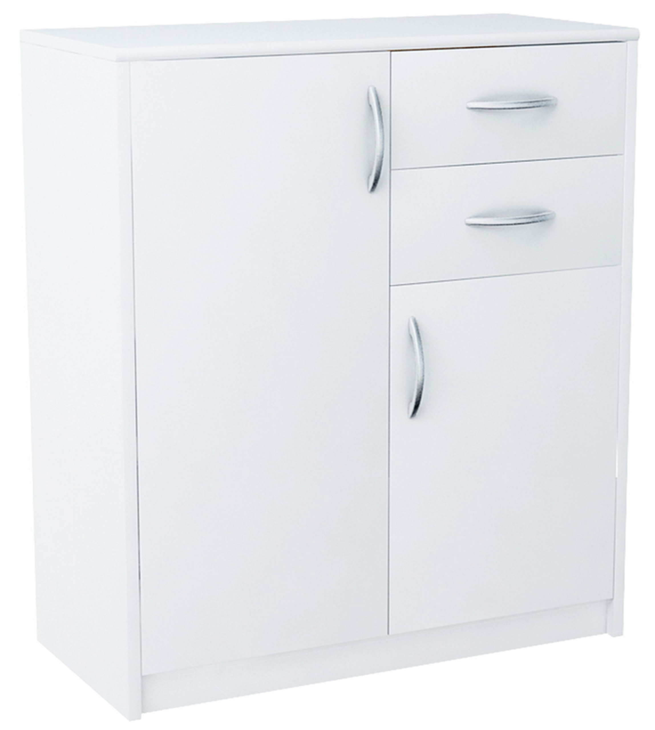 Komoda 2D2S je sestavljena iz dveh omaric, ene večje s polico in druge manjše, ter 2 predala, ki se nahajajo nad manjšo omarico.