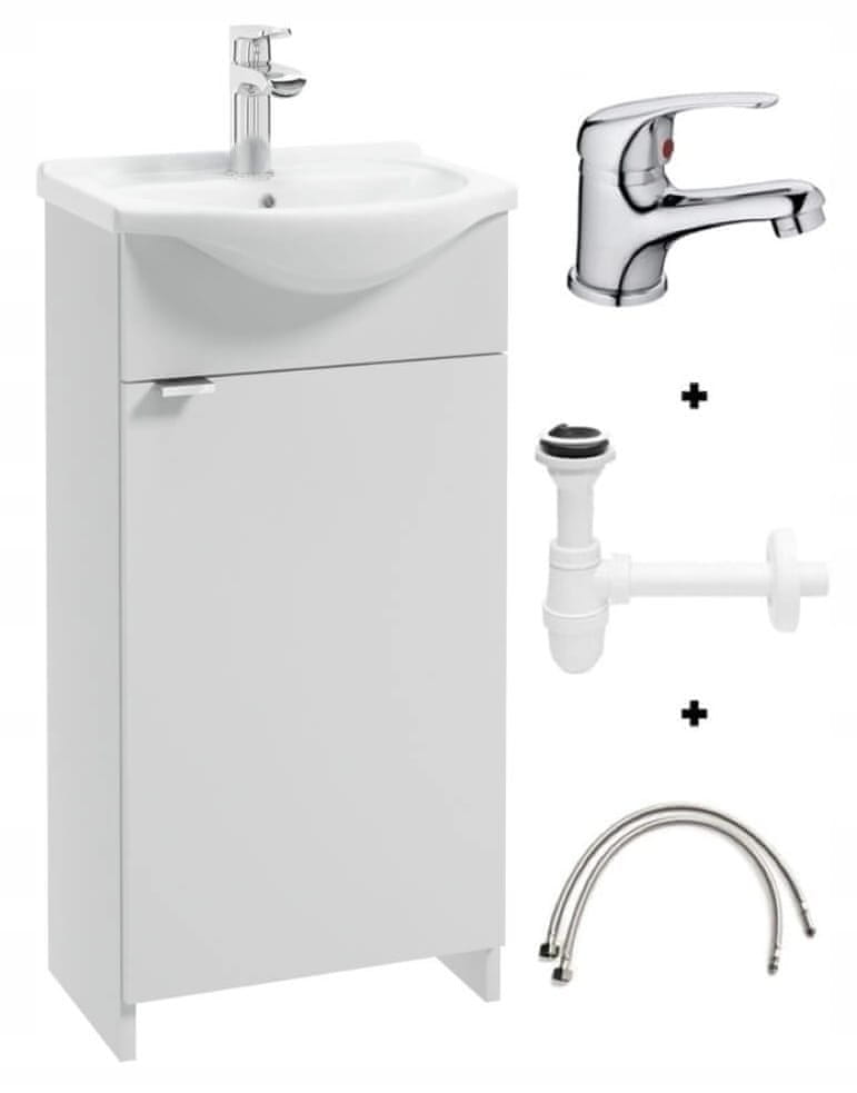 shumee Kopalniška omarica z umivalnikom 40 cm, prostostoječa, bela, s sifonom in kromirano pipo, Kredo