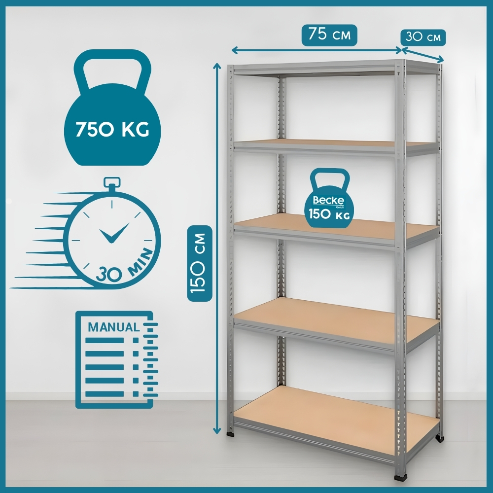 150 × 75 × 30 cm ☑️ visoka nosilnost vsake police –