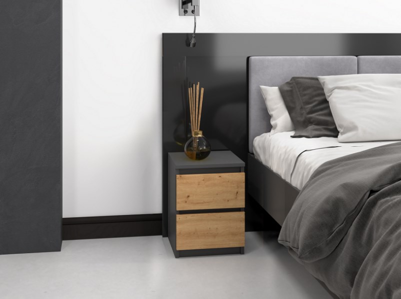 MALWA M2 POSTELJNA OMARICA – ANTRACIT / UMETNIŠKI HRAST