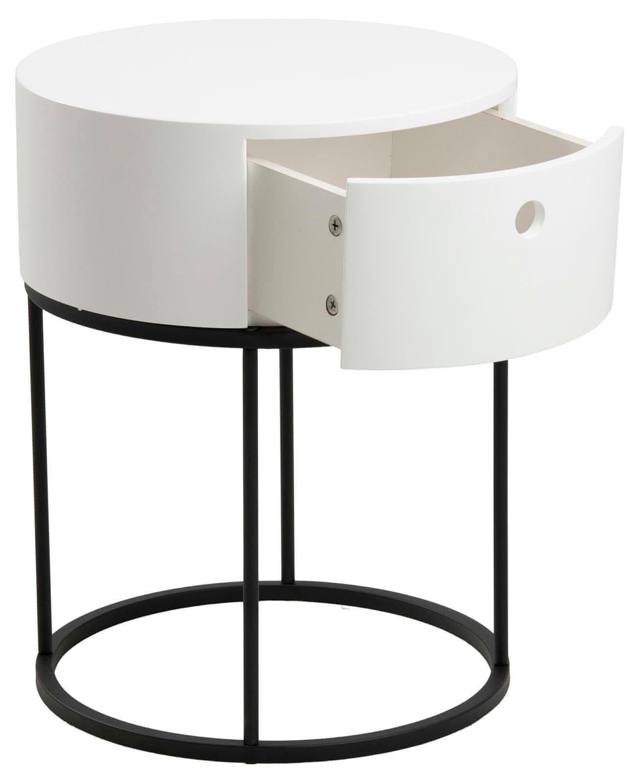 OKROGLA NOČNA OMARICA bela Polo S PREDALOM kovinsko podnožje Celoten opis