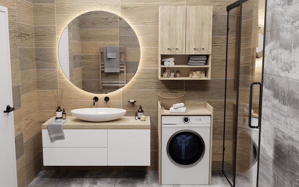 Sodobno stoječa omarica za pralni stroj bo izpolnila pričakovanja vseh, ki cenijo praktične rešitve.