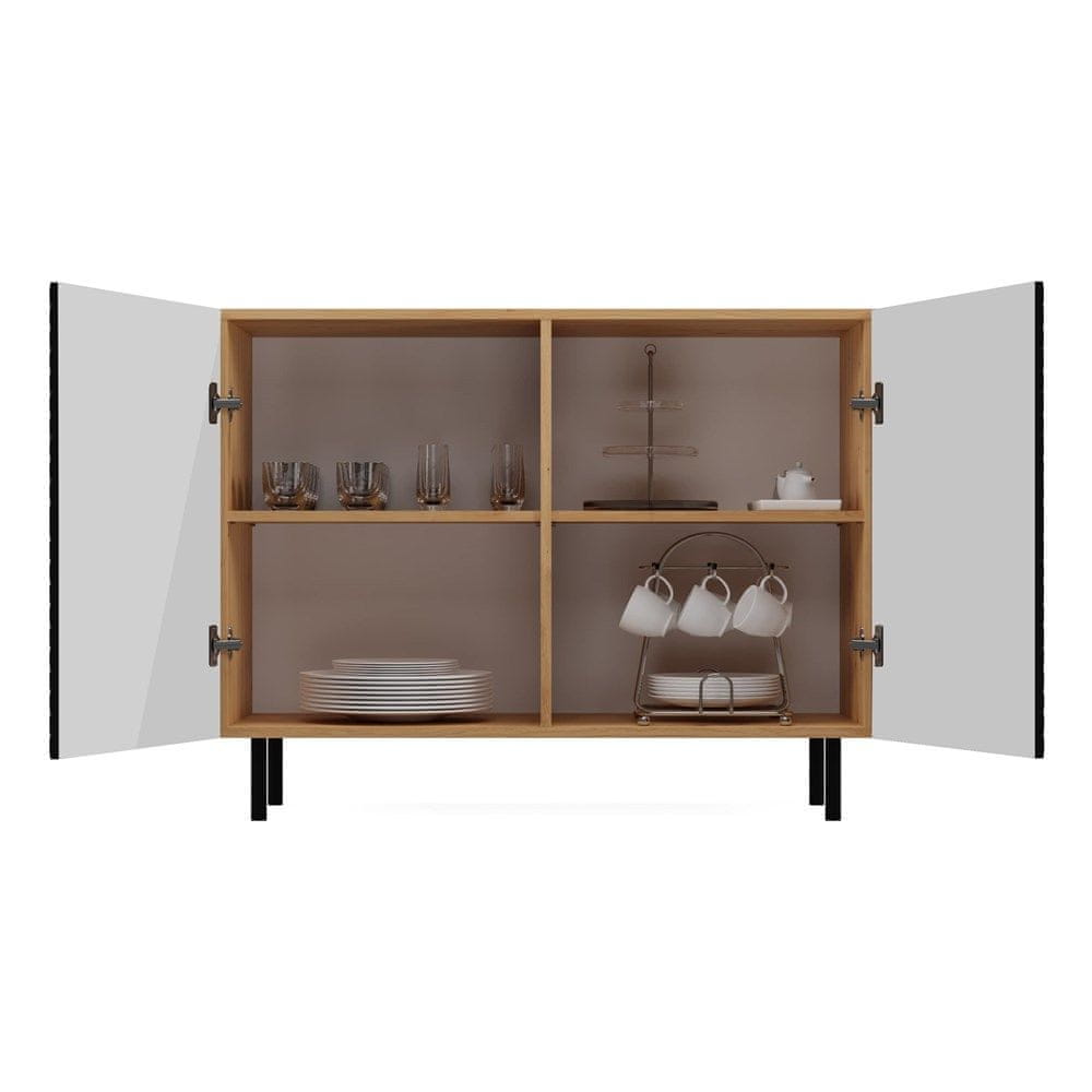 Notranjost komode je sestavljena iz polic, ki vam bodo pomagale pri urejanju stvari. Lažje boste našli, kar iščete.