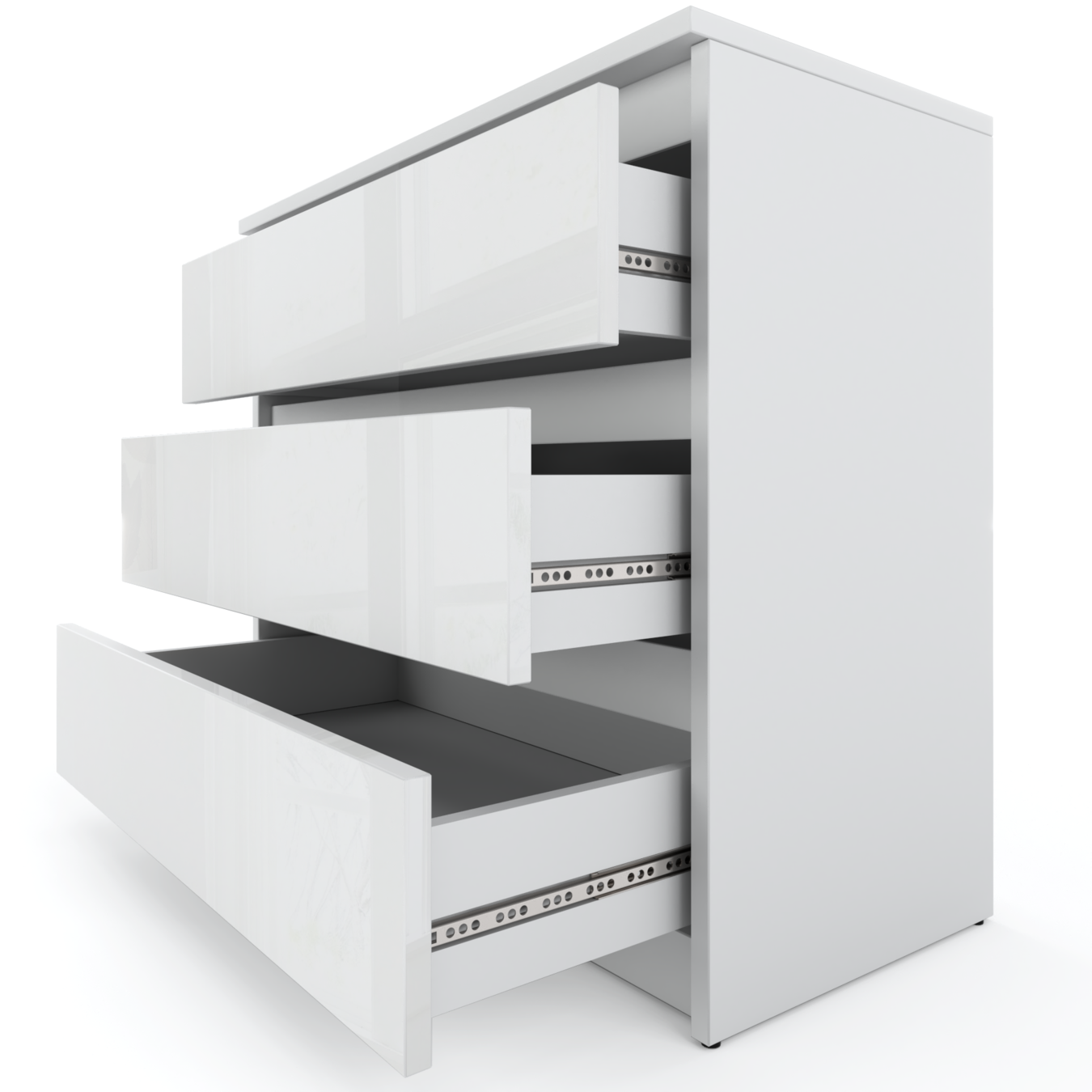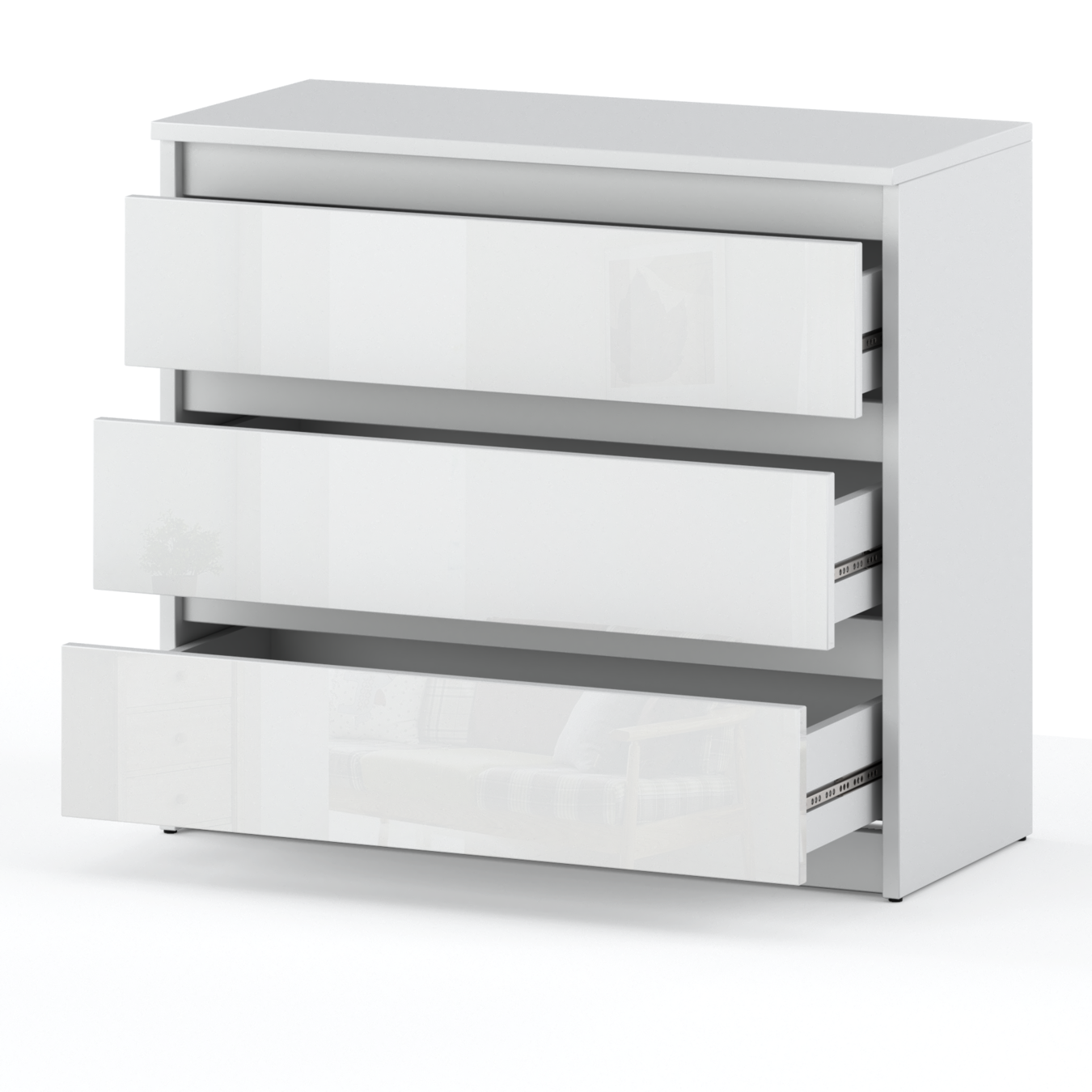 Odkrijte eleganco in funkcionalnost z našo novostjoKomoda s 3 predaliBel sijaj. Sodoben dizajn s frontami brez ročajev, masivno laminirano ploščo, mat površino in praktičnimi predali za optimalno organizacijo. Popoln za vsako notranjost.