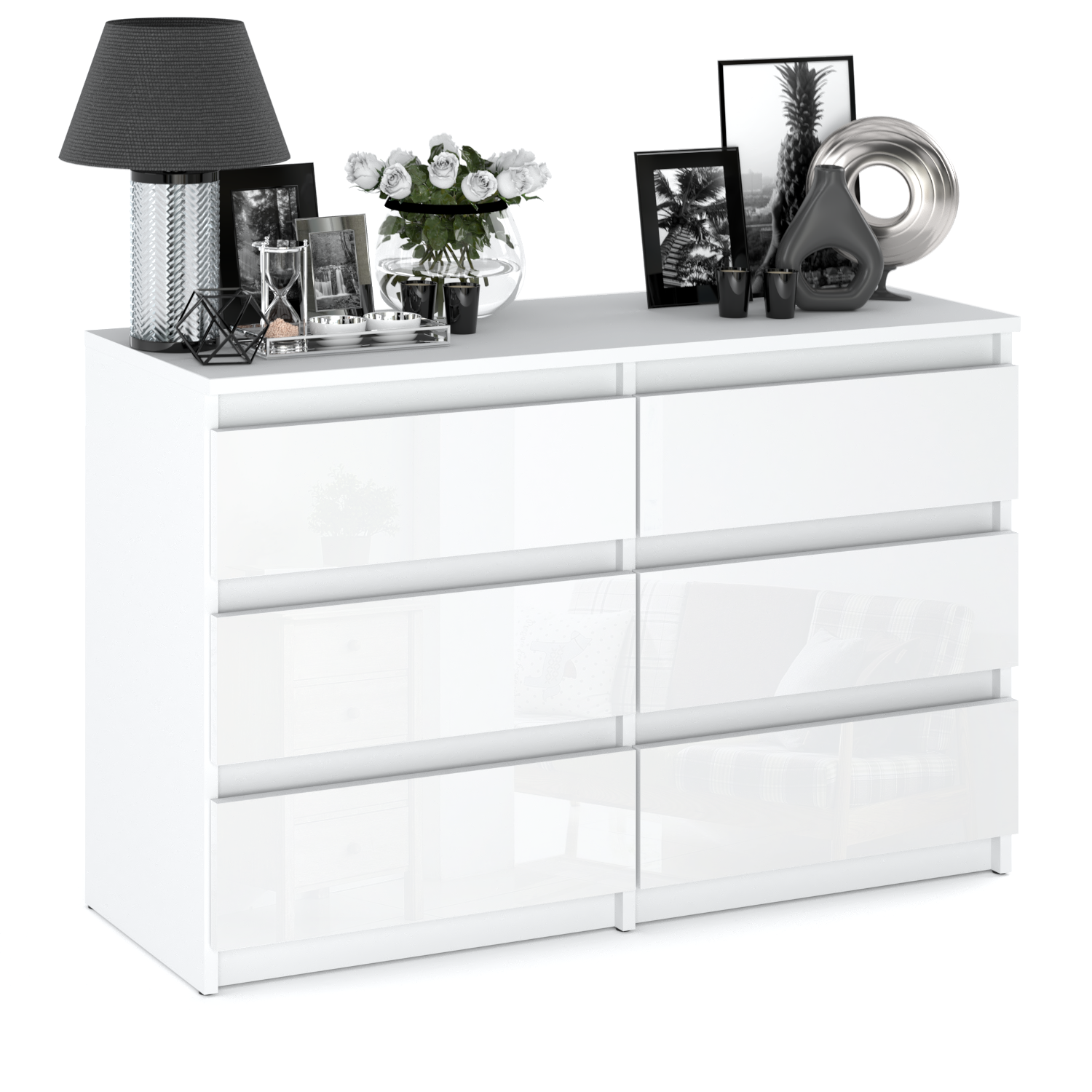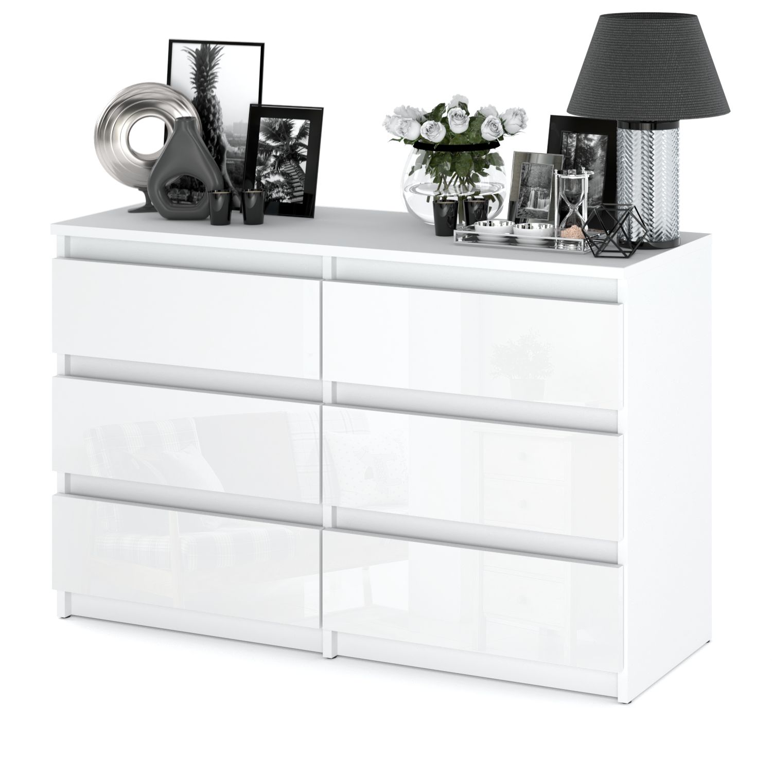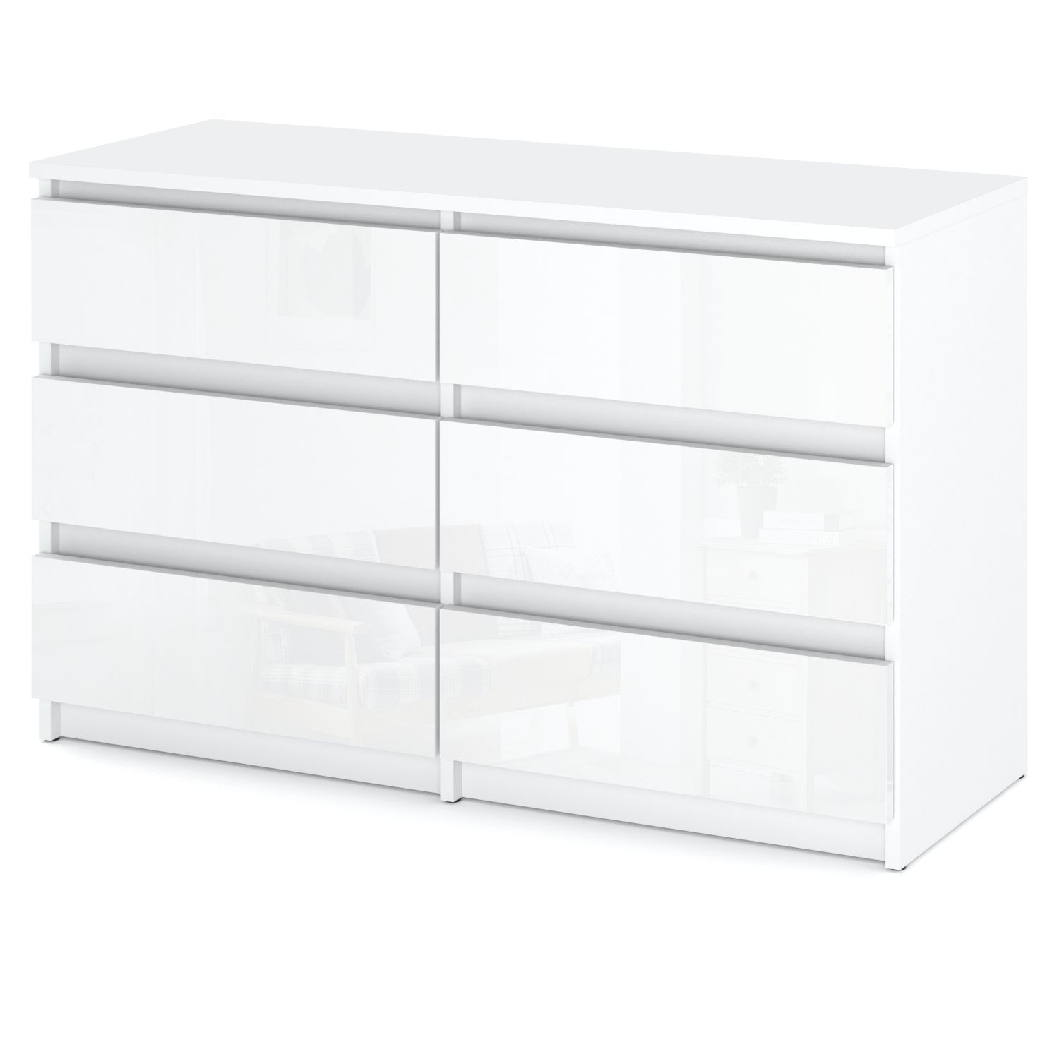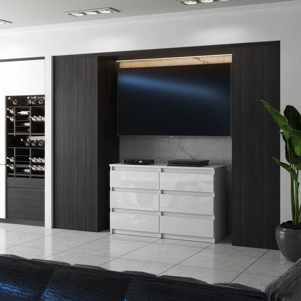 Bela sijajna komoda s 6 predali, širina 100 cm, TV omarica, pohištvo za dnevno sobo, kredenca
