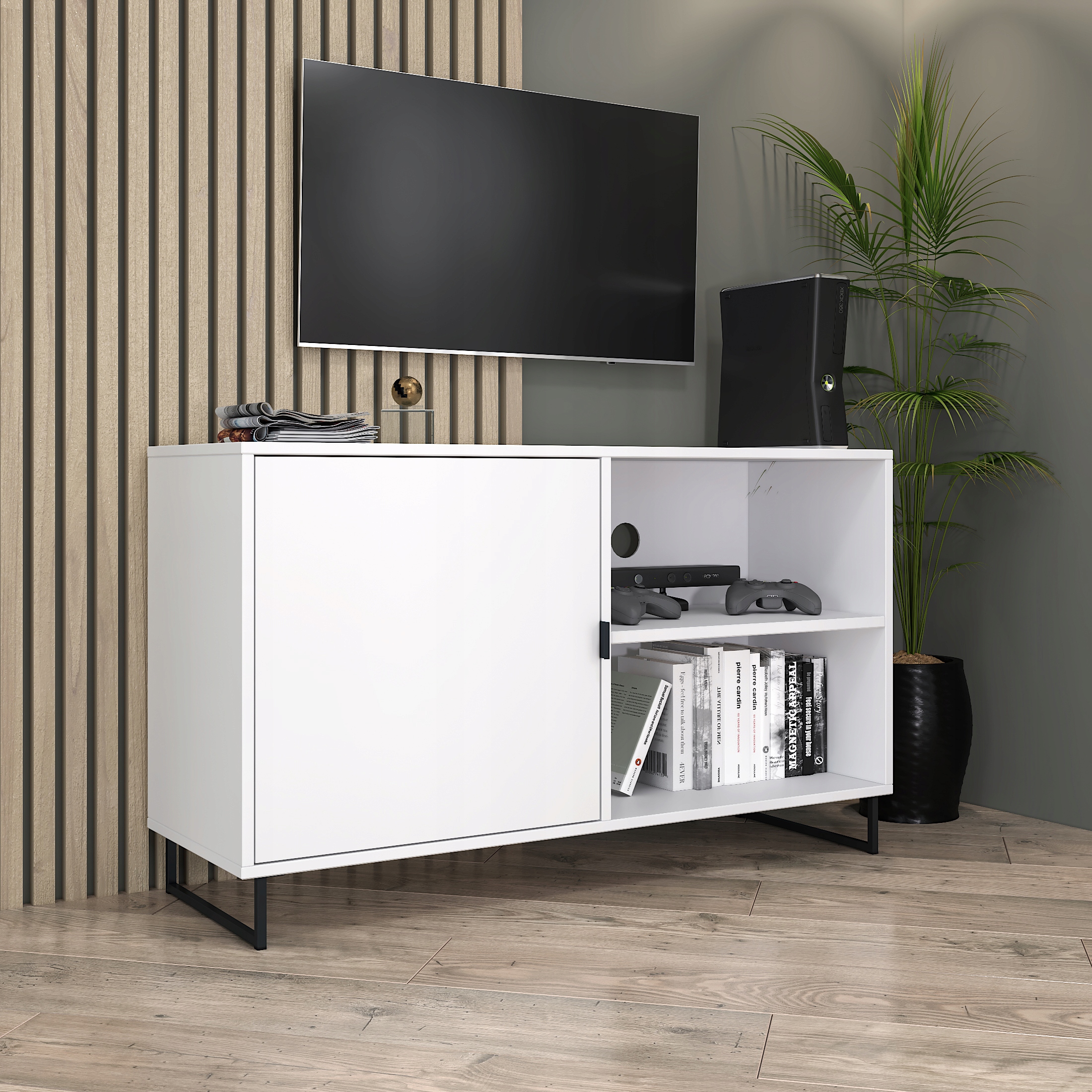 TV omarica, komoda, regal za dnevno sobo, 2 regala, bela Celoten opis