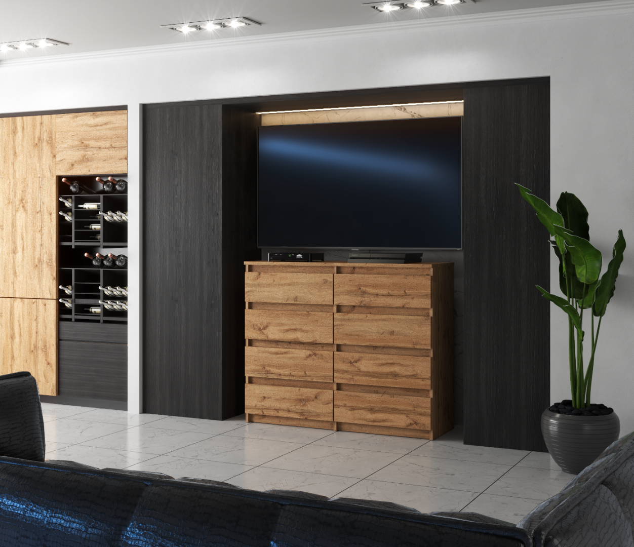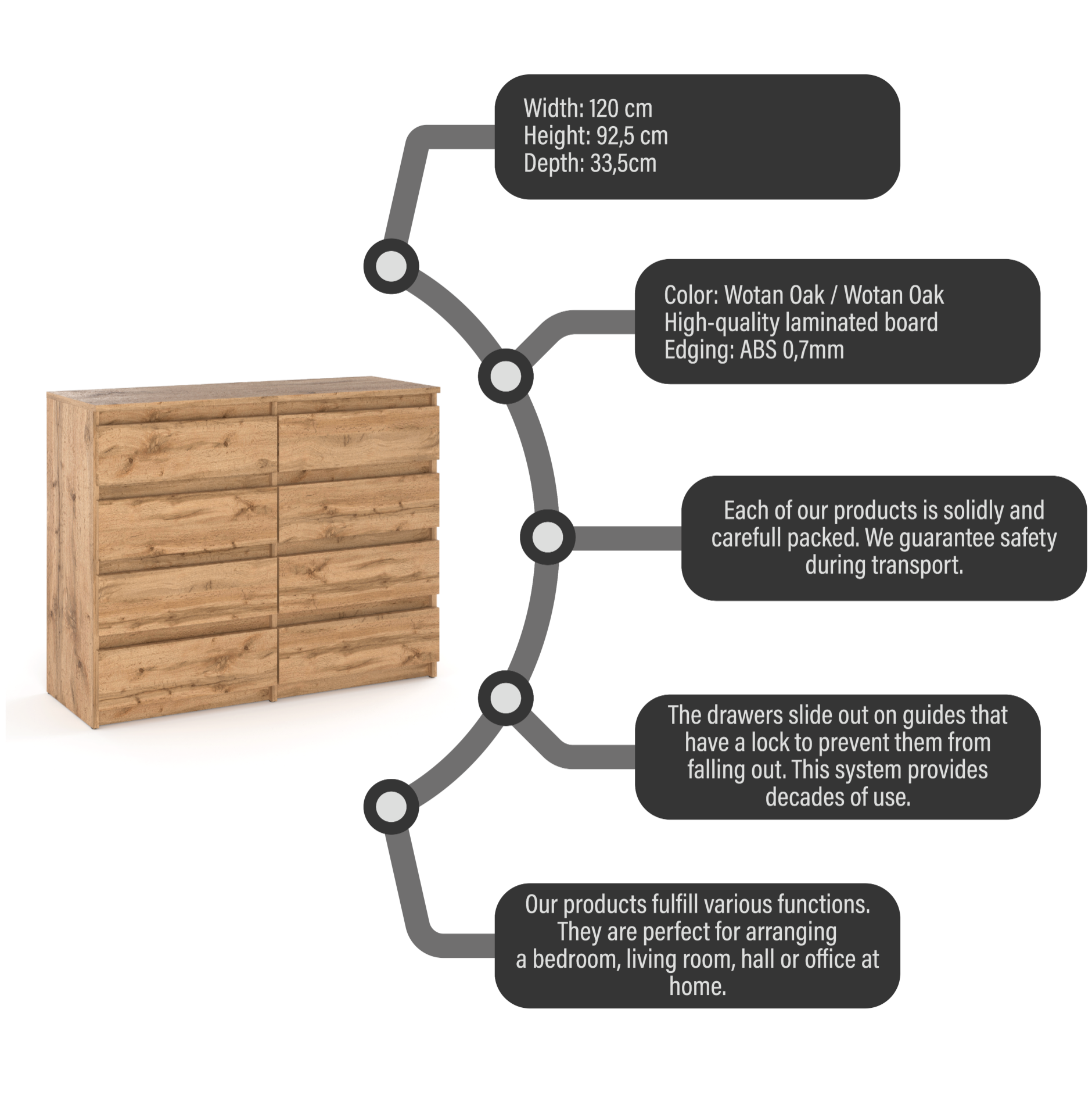 Velika komoda hrast Wotan 120 CM 8S TV omarica za dnevno sobo, spalnica Celoten opis