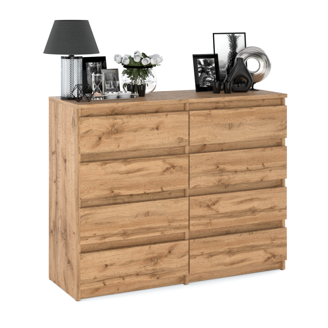 Velika komoda, Hrast, Wotan, 120 CM, 8S, TV omarica za dnevno sobo ali spalnico