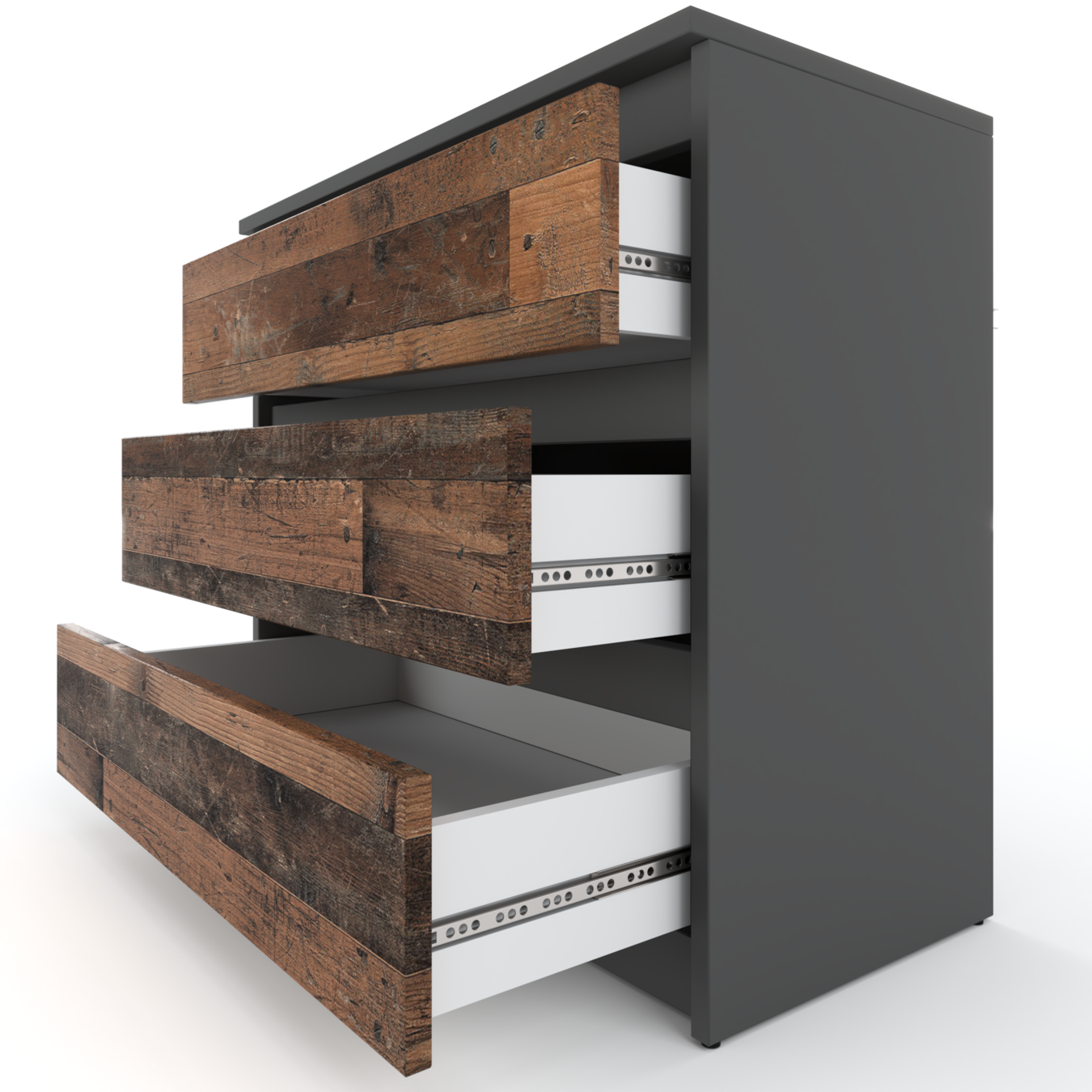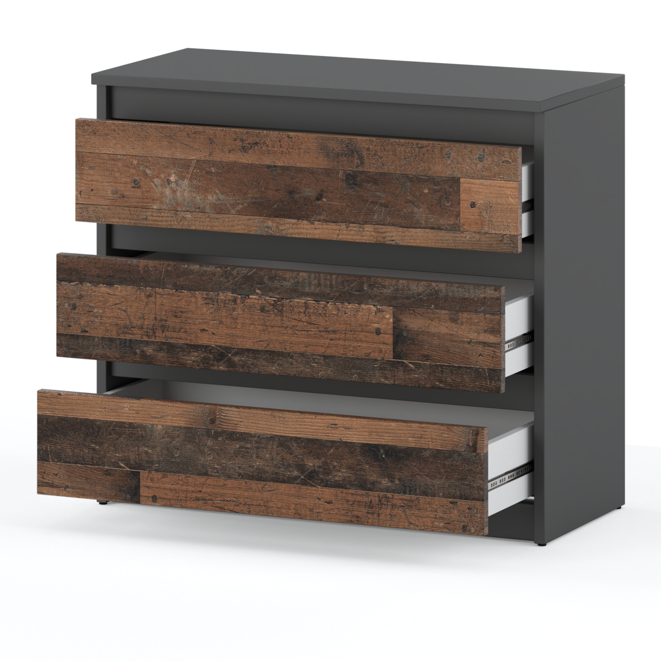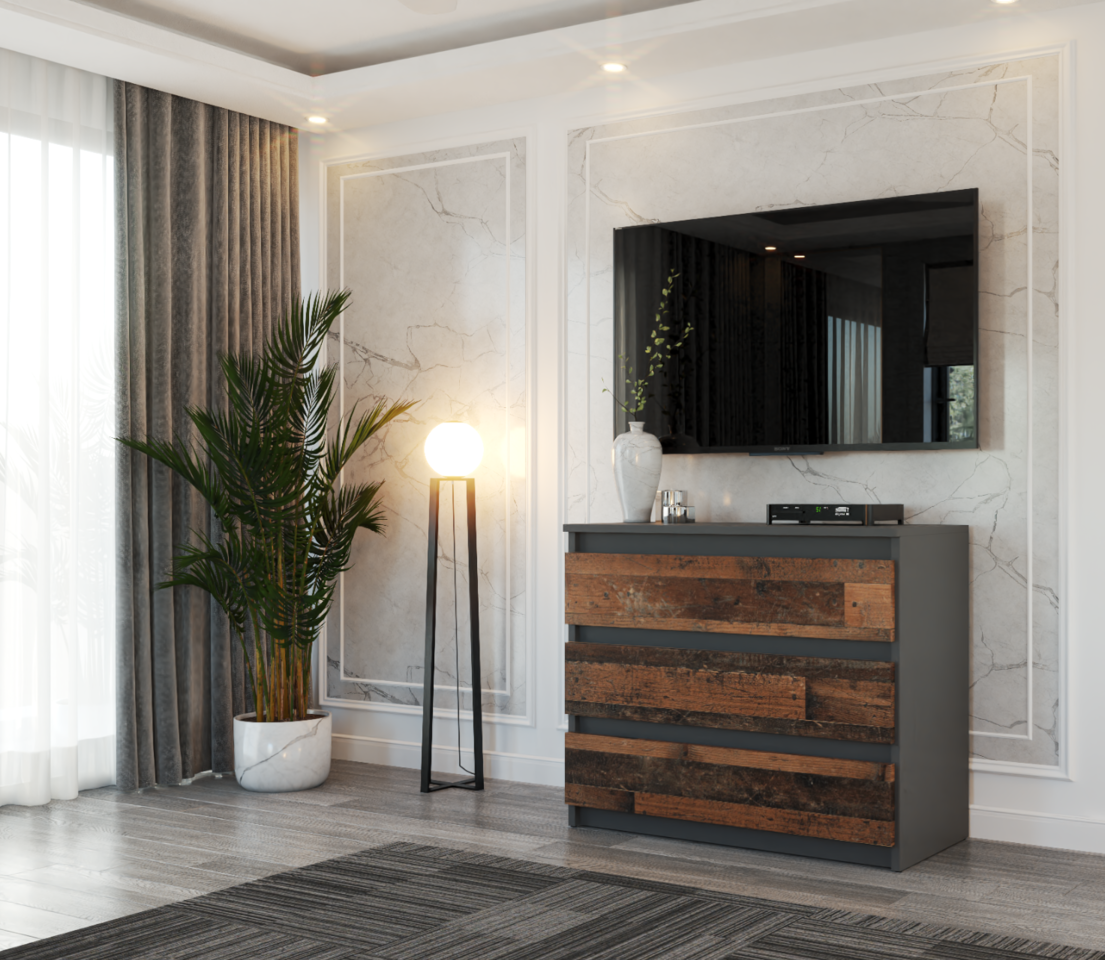 Odkrijte eleganco in funkcionalnost z našo novostjoKomoda s 3 predaliVintage siva. Sodoben dizajn s frontami brez ročajev, masivno laminirano ploščo, mat površino in praktičnimi predali za optimalno organizacijo. Popoln za vsako notranjost.