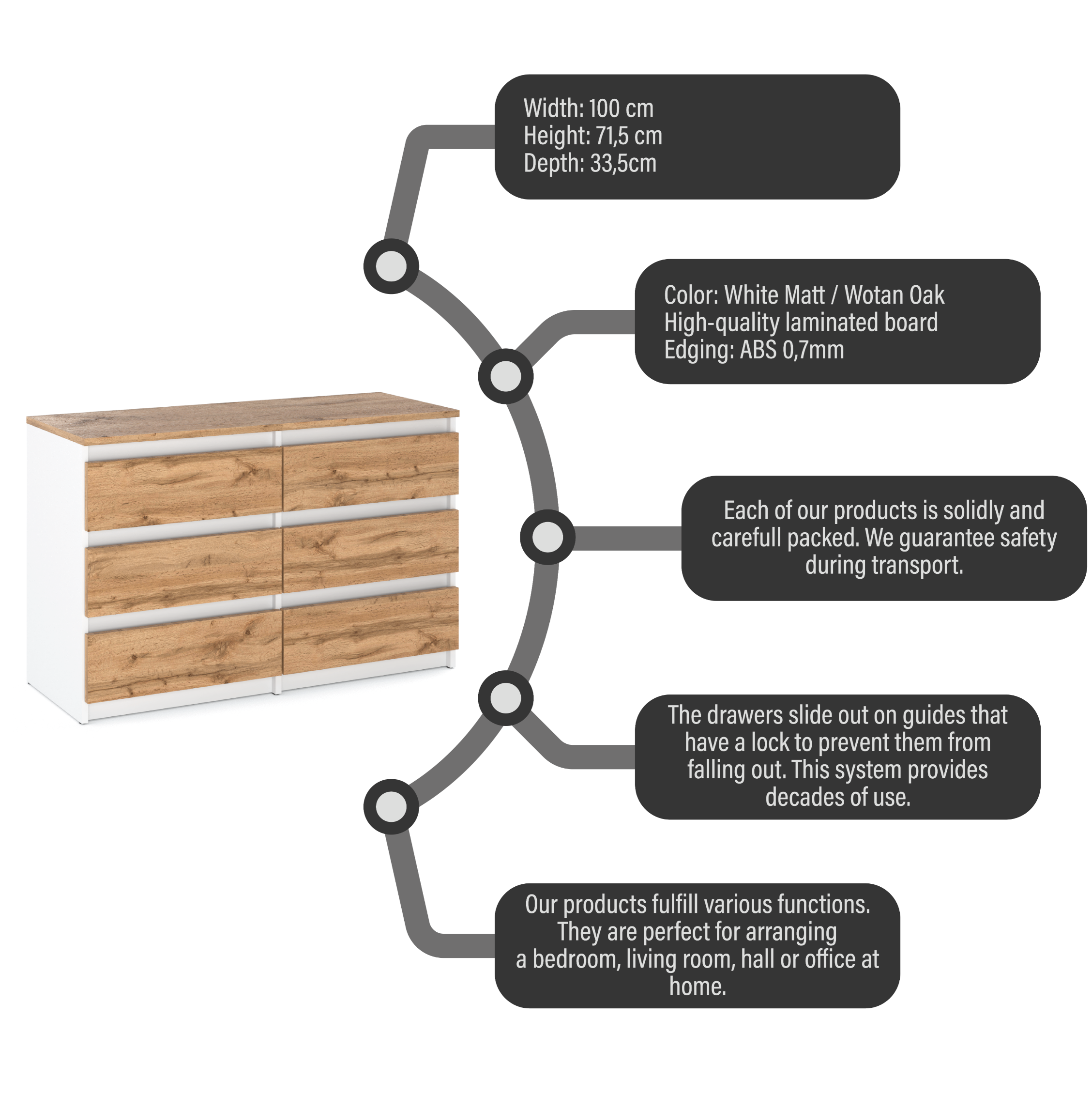 • Komoda s 6 predali je dobavljena v enem paketu.