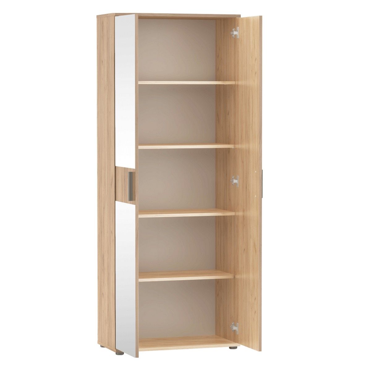 Predstavljamo vam dvovratno regalno omaro z ogledalom SERVO TYPE 7 v elegantnem obrtniškem hrastovem dizajnu, ki je idealna rešitev za moderne interierje. Praktična in elegantna rešitev za vaš dom. Regalna omara Servo tip 7 je izdelana iz visokokakovostnega aglomeriranega materiala v obliki laminirane iverne plošče. Garderobna omara bo prevladujoč element v domu, za katerega je značilen minimalističen slog. Z dimenzijami 70 cm v širino, 180 cm v višino in 35 cm v globino zagotavlja dovolj prostora za shranjevanje oblačil ali drugih osebnih predmetov. Garderobna omara ponuja veliko prostora za shranjevanje v obliki polic. Priloženo ima ogledalo. Servo Type 2 ima plastične ročaje in je zgrajen na plastičnih nogah.