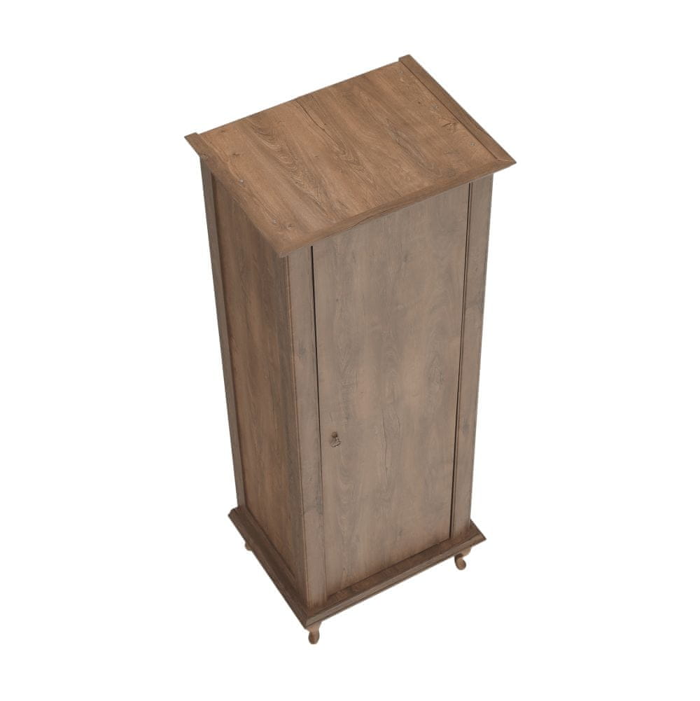 Eden od sestavnih delov čudovitega sekcijskega pohištva je garderobna omara VILAR DA3. Njene dimenzije (ŠxGxV): 75×57×196 cm, višina spodnjega prostora od tal je 15 cm. Trdne lesene noge mu dajejo stabilnost, za odpiranje pa skrbi dizajnerski kovinski ročaj. Garderobna omara ponuja prostor za shranjevanje v obliki obešalne palice in polic. Če želite reprezentativno bivanje, si oglejte segmentno pohištvo VILAR. V baročnem stilu in s 3D učinkom doda prostoru pridih razkošja, zahvaljujoč kateremu bo vaša dnevna soba videti razkošno in razkošno. Dekorativni elementi izgledajo romantično in ekskluzivno. Pohištvo je izdelano iz laminirane DTD (iverne plošče) debeline 30 mm z masivnimi ABS robovi. Dizajn hrasta Lefkas se bo čudovito zlil z vsakim interierjem. Ustvarite pravo toplino svojega doma s tem čudovitim sektorjem. Z njim lahko okrasite svojo jedilnico, pa tudi dnevno sobo.
