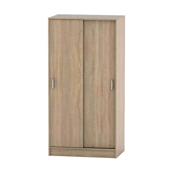 Dvovratna viseča omarica z drsnimi vrati BETTY 4 bo postala vaš nenadomestljiv pomočnik. Njegova prednost je predvsem univerzalnost, saj ga lahko postavite tako rekoč kjer koli v stanovanju ali hiši. Za dnevno sobo, spalnico ali otroško sobo. Preprosto tam, kjer ga potrebujete. Zagotovo boste cenili njegove dimenzije (ŠxGxV): 90,2×58,2×180 cm, saj ima dovolj prostora za shranjevanje katerekoli vaše stvari. Za izdelavo je bil uporabljen DTD (iveral) laminiran, njegovo unikatnost pa dopolnjuje barvni dizajn hrast sonoma. Za vrati je obešalnik za naramnice in pod njim polica. Debelina laminata je 1,6 cm, omarica je kakovosten slovaški izdelek.