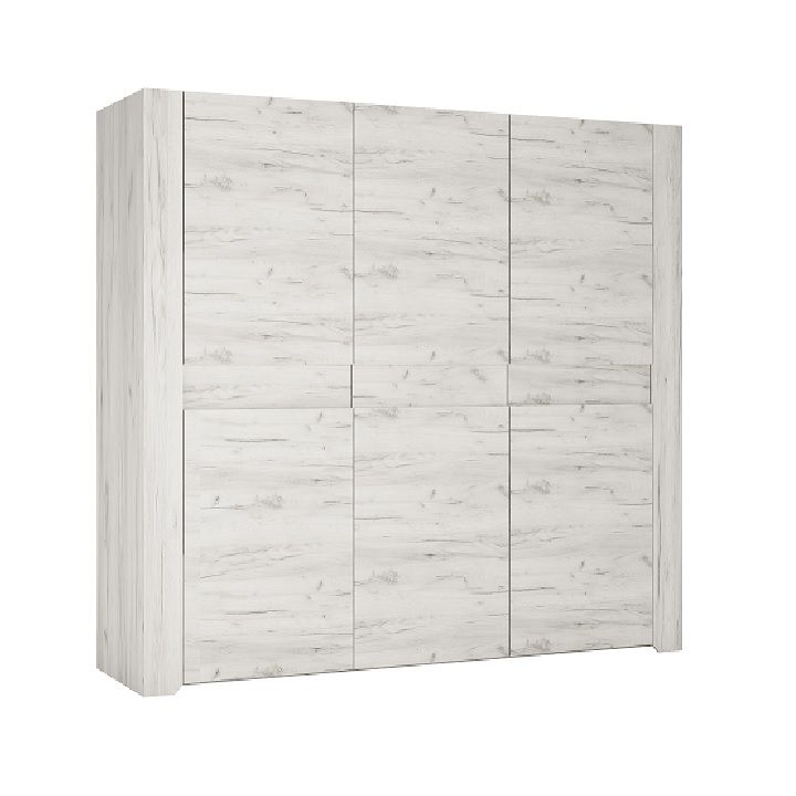 Trivratna omara ANGEL TIP 22 3D s svojimi dimenzijami ponuja veliko prostora za shranjevanje oblačil in drugih stvari. Lahko se kombinira z drugimi elementi iz linije modelov Angel. Osrednji del omare je polica, ostala 2 dela pa obešalniki. Na voljo so do 4 palice za obešanje. Regalni del vsebuje 5 polic, ki ga delijo na 6 odlagalnih mest. Vrata so brez kljuk, nadomeščena z odprtinami v osrednjem delu. Sistem Angel je sektorski komplet primeren za opremljanje spalnice, otroške ali študentske sobe. Posamezne komponente se prodajajo ločeno, zato je odvisno od vas, katero kombinacijo boste izbrali. Set izstopa po nevtralnosti in brezčasnem dizajnu. Material za izdelavo je laminiran DTD v barvi bela/craft. Ta barvna različica bo v prostor prinesla nežnost, stil in izviren dizajn.