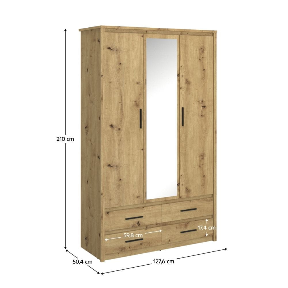 Predstavljamo vam trivratno omaro z ogledalom Airon 3D4S v elegantnem hrast artisan dizajnu, ki je idealna rešitev za moderne interierje. Ta omara KONDELA ponuja praktične in elegantne prostore za shranjevanje, ki bodo zadovoljili še tako zahtevne uporabnike.