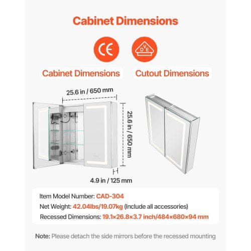 Ta osvetljena kopalniška omarica z ogledalom je zasnovana za izboljšanje vaše kopalniške izkušnje z moderno udobnostjo in slogom. Ponaša se z nastavljivimi policami za prilagodljivo shranjevanje visokoločljivostnim ogledalom za jasne odseve ter možnostjo montaže na steno ali vgradnje v steno. Omarica je opremljena z napredno LED osvetlitvijo tehnologijo proti rosenju in vgrajeno vtičnico za napajanje brivnikov kar jo naredi praktičen dodatek za vsako kopalnico.