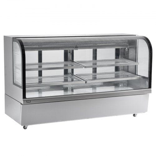Ta hladilni vitrin je zasnovan za komercialna okolja kot so pekarne kavarne in slaščičarne ter zagotavlja optimalno shranjevanje in predstavitev različnih živil. Njegov napreden hladilni sistem omogoča hitro in dosledno temperaturno kontrolo kar ohranja svežino in kakovost vaših izdelkov. Naprava ima močno LED osvetlitev in jasno kaljeno steklo za odlično vidljivost izdelkov prilagodljive police in enostavno premikanje pa povečujejo njeno vsestranskost in priročnost.