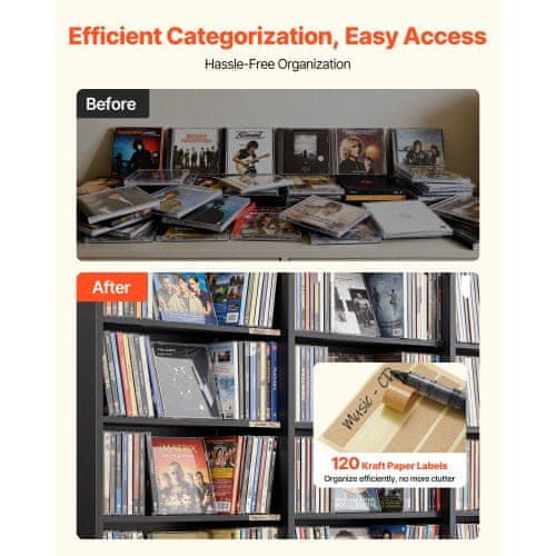 VEVOR Omara za shranjevanje medijev 142x22x130 cm Črna