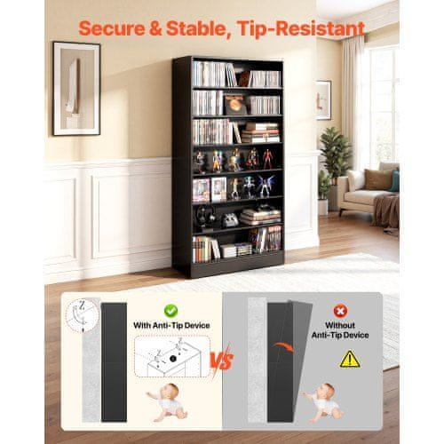 Ta medijski kabinet za shranjevanje ponuja vsestransko in učinkovito rešitev za organizacijo vaših CD-jev DVD-jev knjig in iger. Z zasnovo z nastavljivimi policami omogoča prilagoditev prostora za shranjevanje za predmete različnih velikosti zaradi česar je idealen za dnevne sobe domače pisarne ali snemalne sobe. Kabinet ima stabilno konstrukcijo z zaščito proti prevrnitvi in vključuje nalepke za enostavno organizacijo in identifikacijo vaših zbirk.