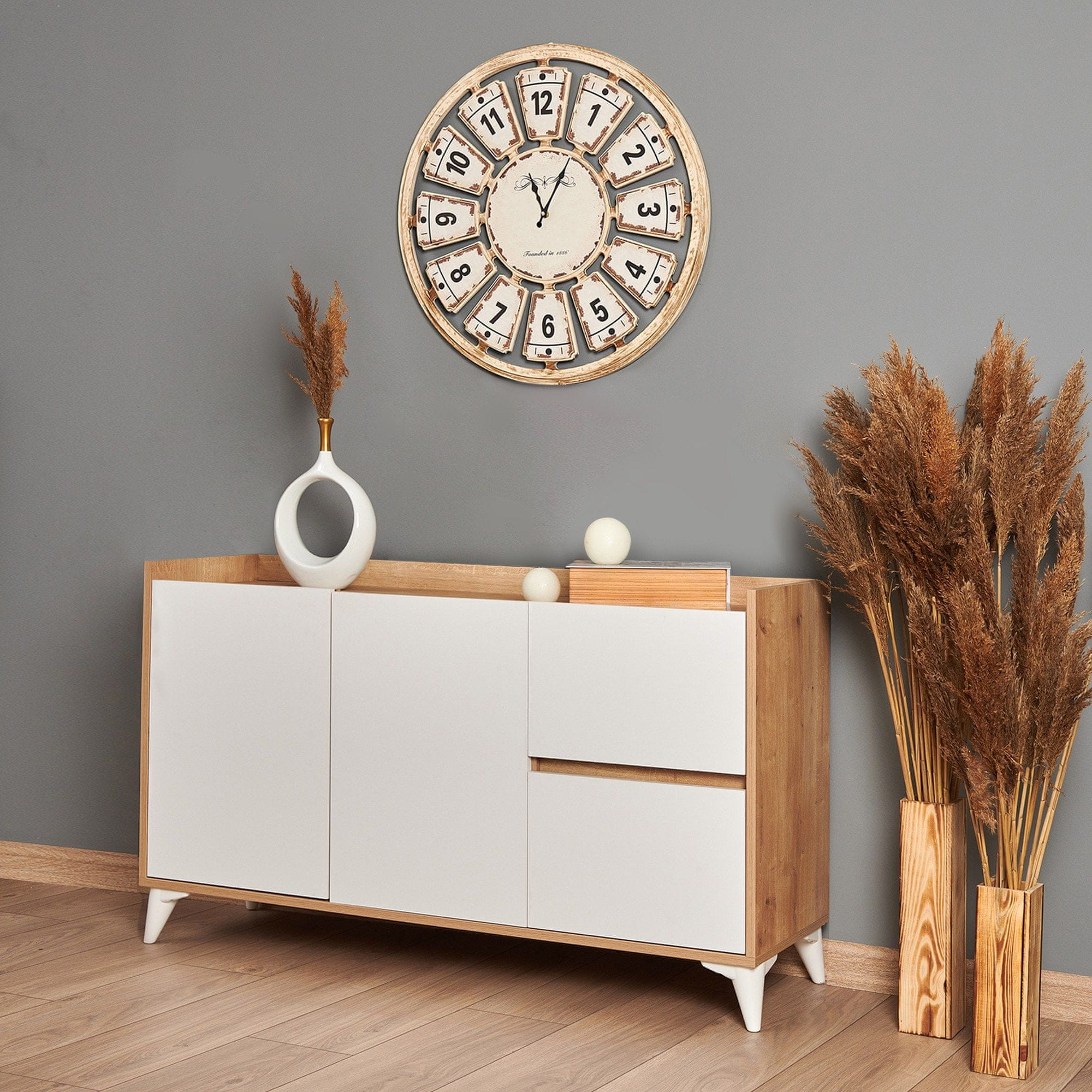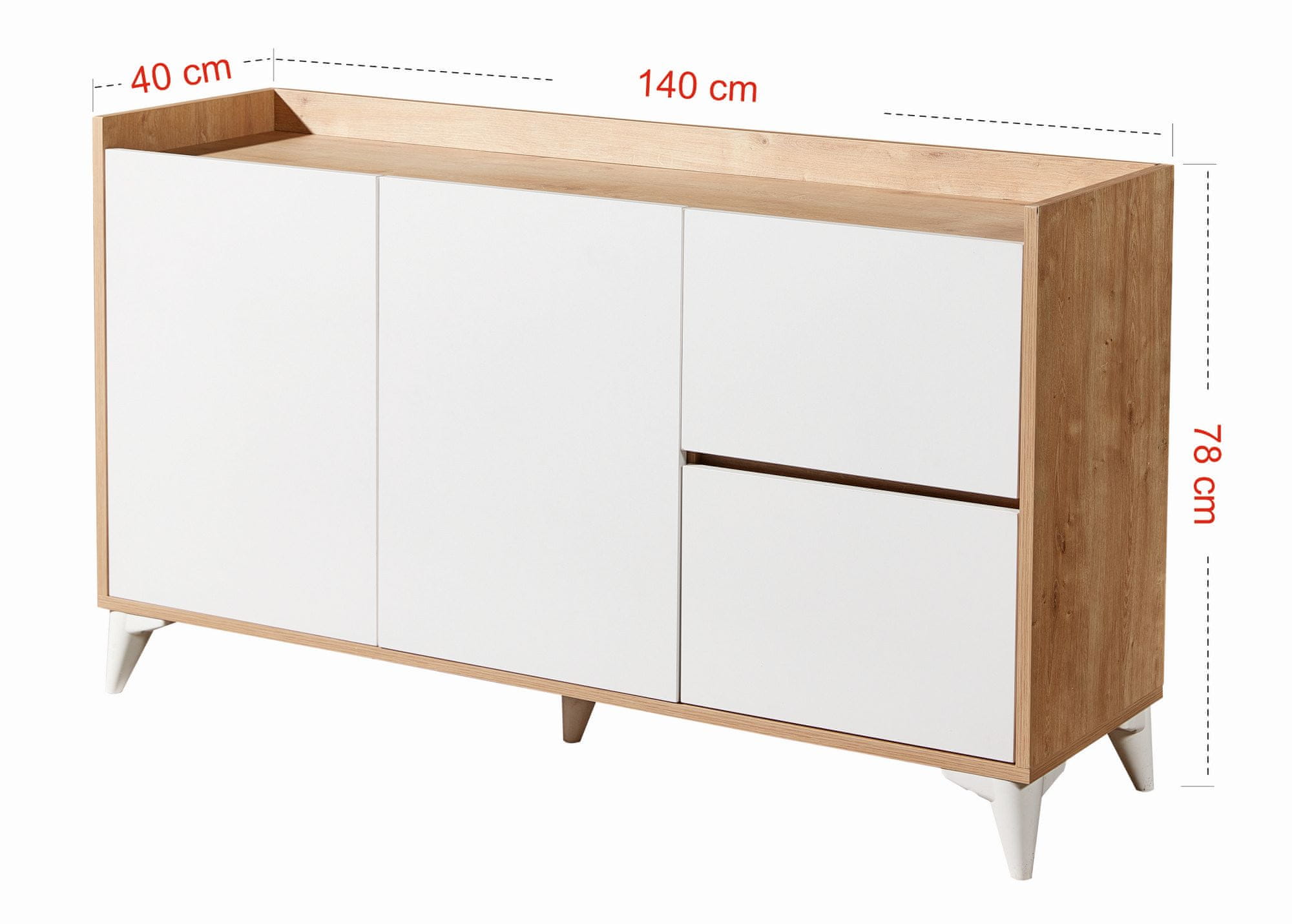 100 % MELAMINSKO PREVLEČENA IVERNA PLOŠČA Debelina: 18 mm Robovi na korpusu: 0,8 mm Širina: 140 cm Višina: 78 cm Globina: 40 cm Vrata iz MDF z 0,35 mm membransko prevleko iz pepelovca Enostavna montaža s sistemom Minifix Tečaji s torno zavoro Višina noge: 12 cm 35 cm vodila 2 vrata 2 predala Dodatni prostor za shranjevanje