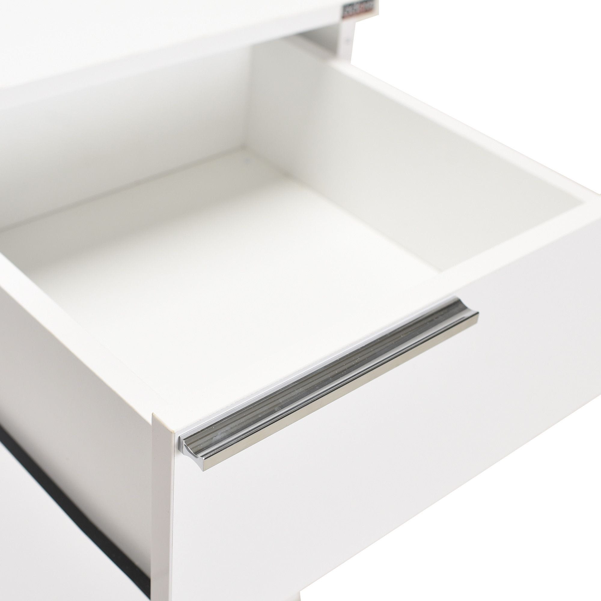 100 % MELAMINSKO PREVLEČENA IVERNA PLOŠČA Debelina: 16 mm Širina: 85 cm Višina: 81 cm Globina: 44 cm Velikost predalov: 44 cm: Širina: 42,5 cm Višina: 18 cm Globina: 44 cm 5 predalov in številne police Noge na kolesih Lahko se pritrdijo na steno Število paketov: 1