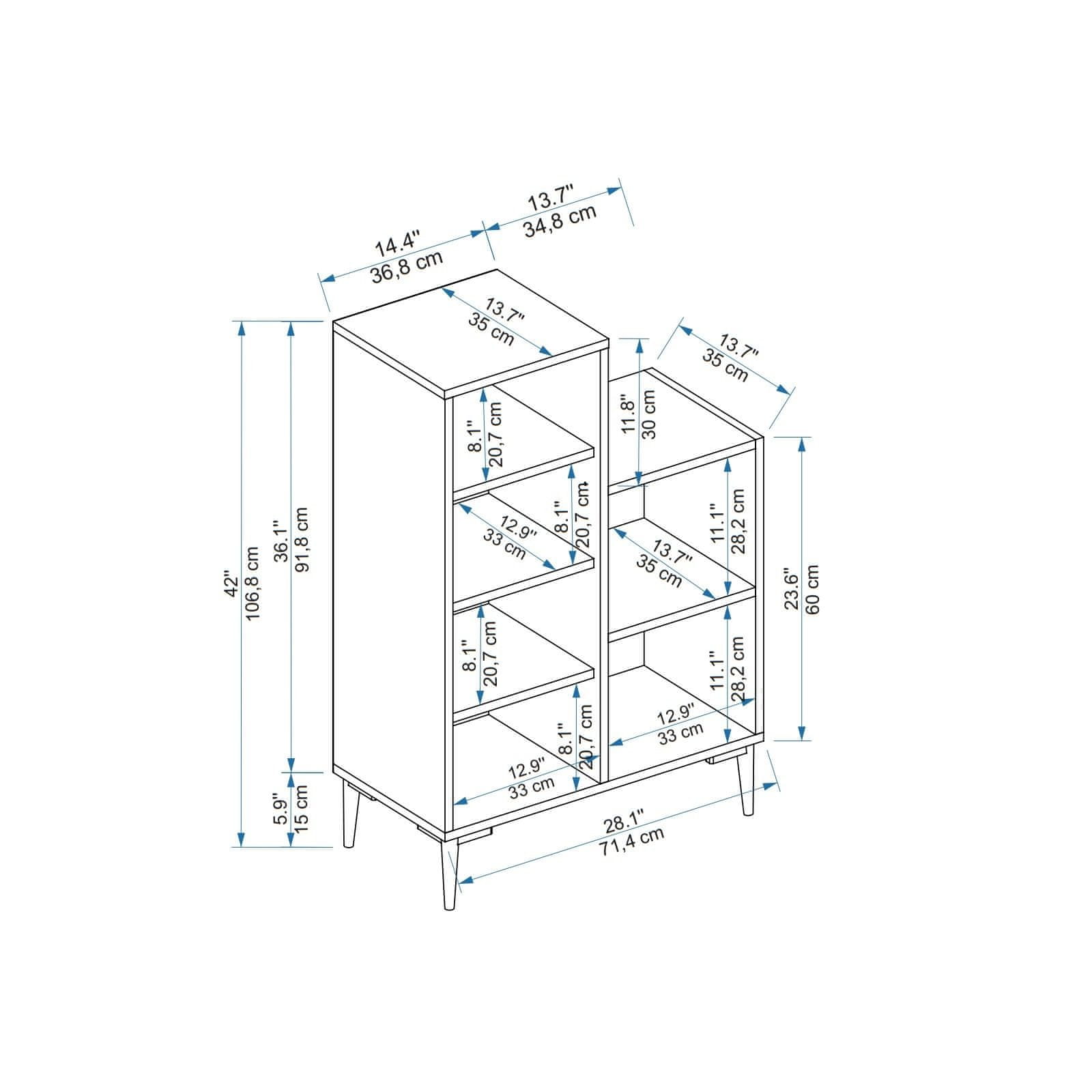 100 % IVERNE PLOŠČE PREVLAČENE Z MELAMINOM Debelina: 18 mm Širina: 106,8 cm Višina: 71,4 cm Globina: 35 cm Višina noge: 15 cm Dodatna shramba Številne police Lahko se pritrdi na steno Število paketov: 1 40 × 100 × 17 cm / 20 kg (1 kos)