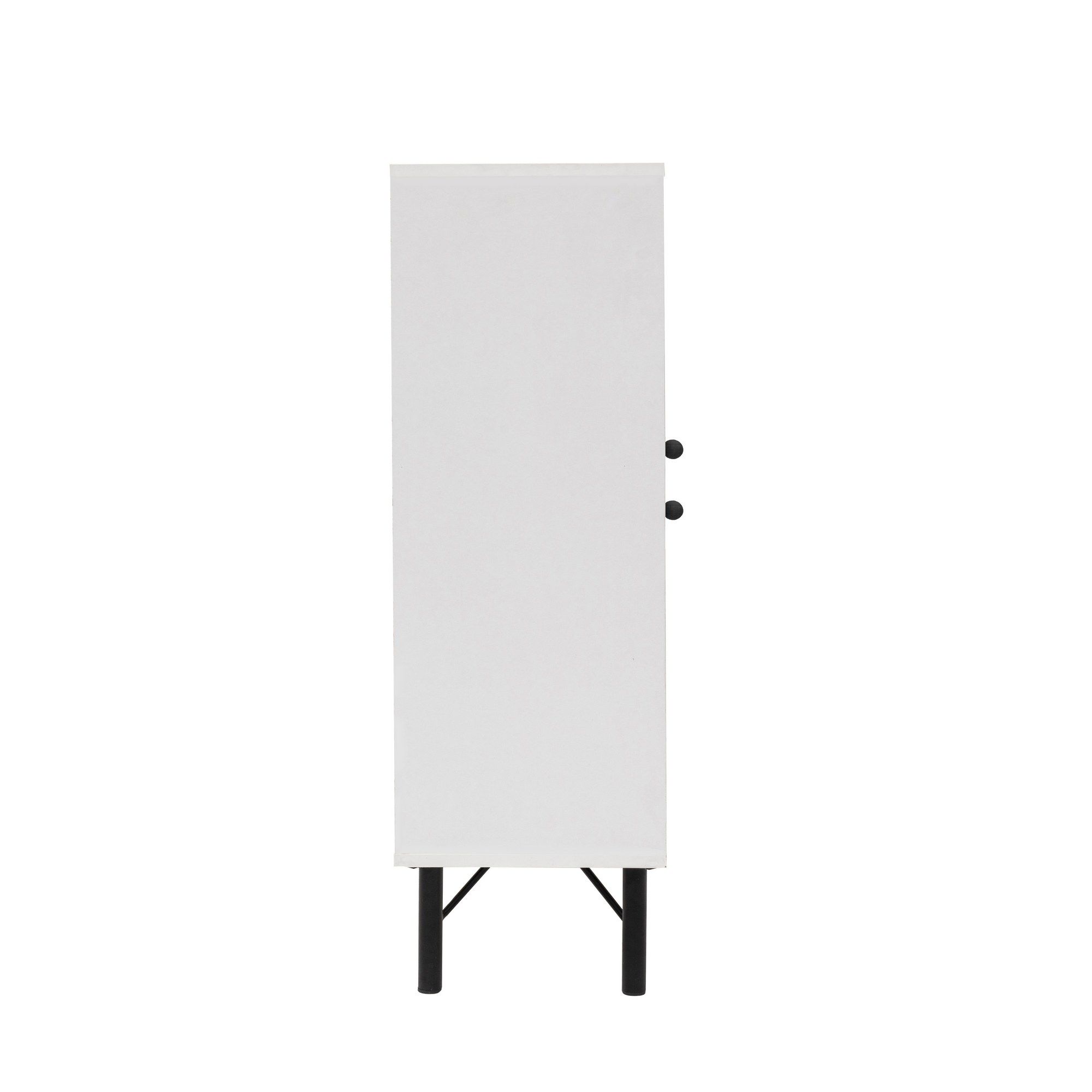 100 % MELAMINSKO PREVLEČENA IVERNA PLOŠČA Debelina: 18 mm Kovinske noge UV-lakiranje Širina: 95 cm Višina: 111 cm Globina: 36 cm Višina nog: 15 cm Višina police: 19,8 cm Številne police Možnost pritrditve na steno Dodatno shranjevanje