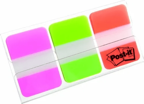 Post-It Index odstranljivi označevalci.  V roza, zeleni in oranžni barvi.Trši in debelejši.Dimenzija: 25,4 × 38 mm Celoten opis